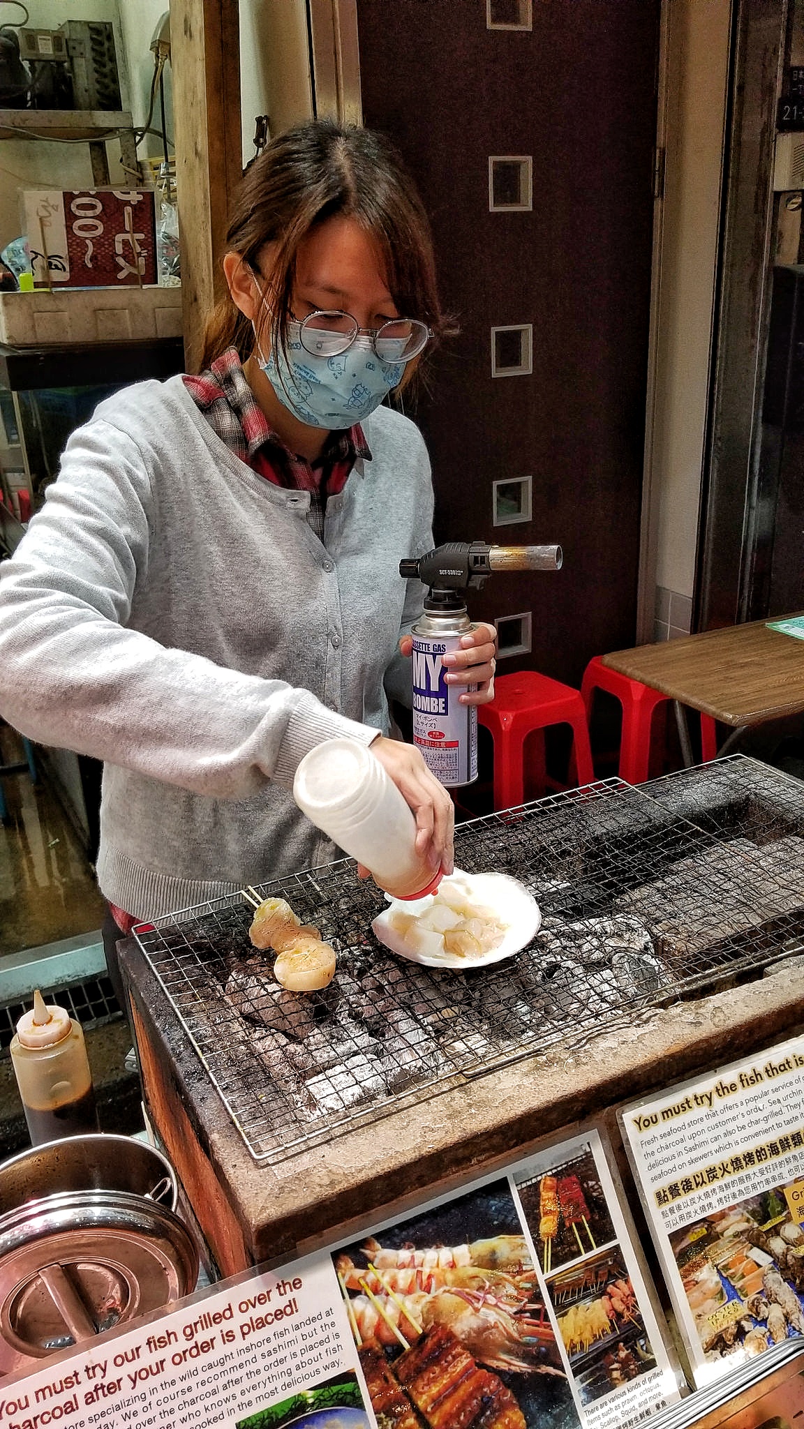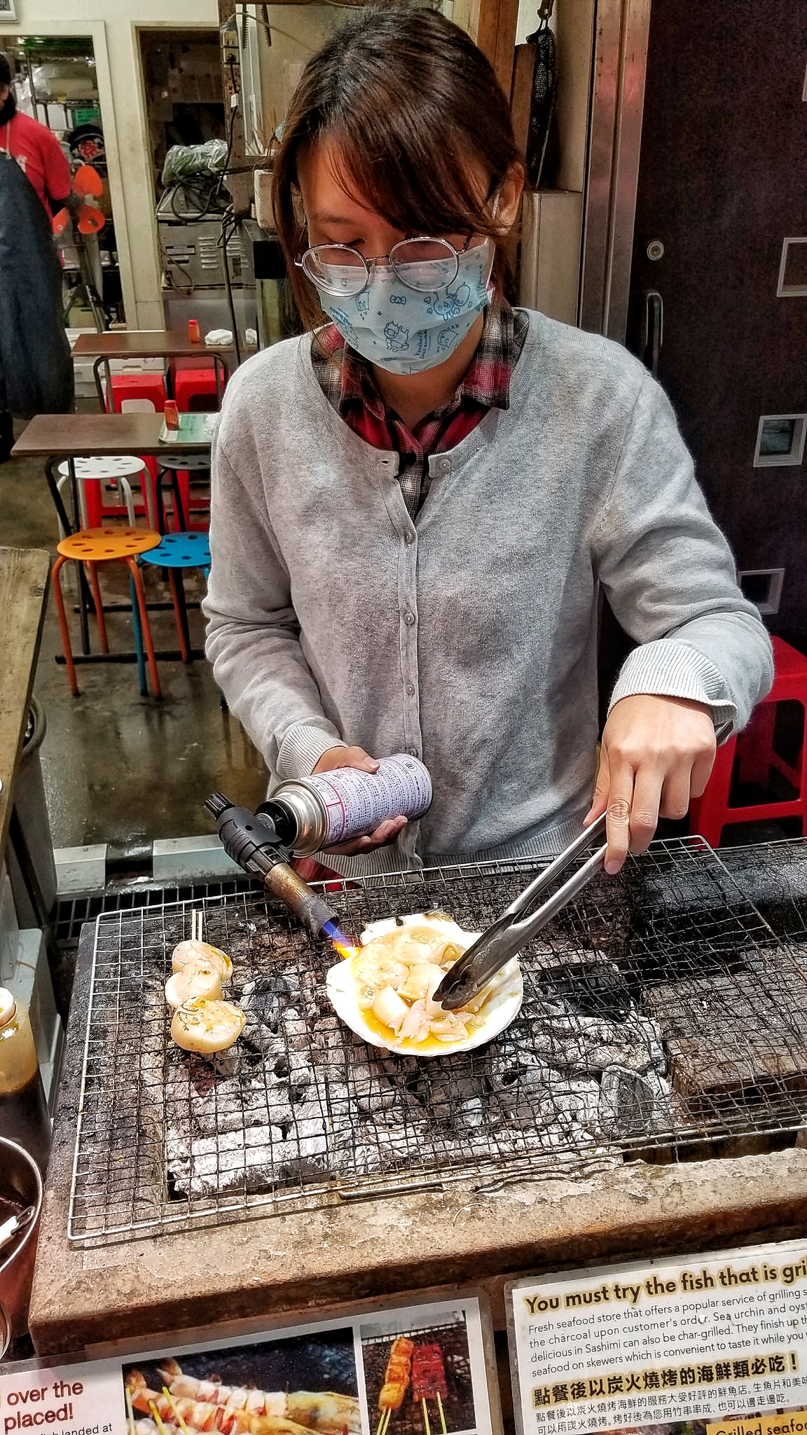 I love wandering markets like these and trying a few things here and there. I stopped by a seafood stand for an incredible Grilled Scallop with soy sauce and butter. Yum!