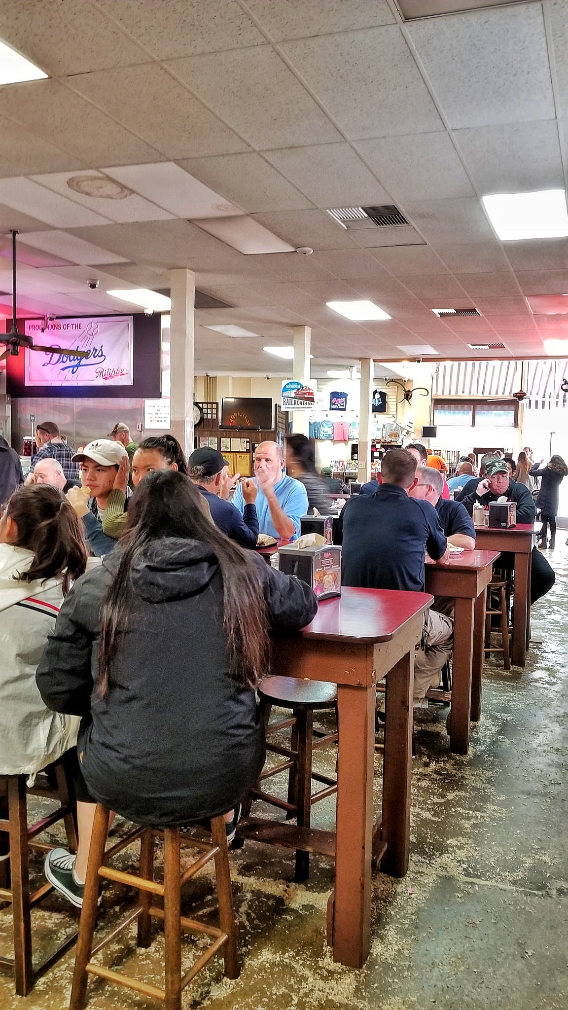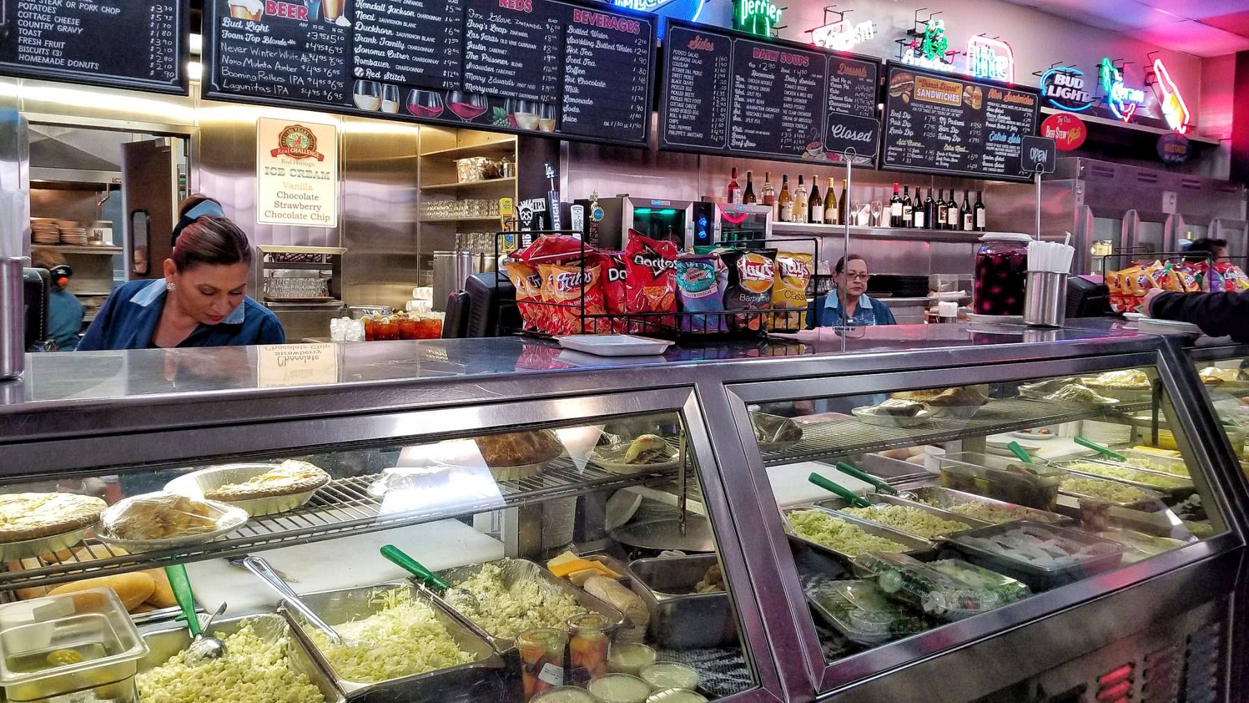 I lined up in front of the long deli case display to place my order. The specialty of the house can be made with either roast beef, roast pork, leg of lamb, turkey, pastrami or ham that’s served on a freshly baked French roll that’s been dipped in the natural gravy of the roasts. You can also add Swiss, American, Cheddar, Monterey Jack or Blue cheese.