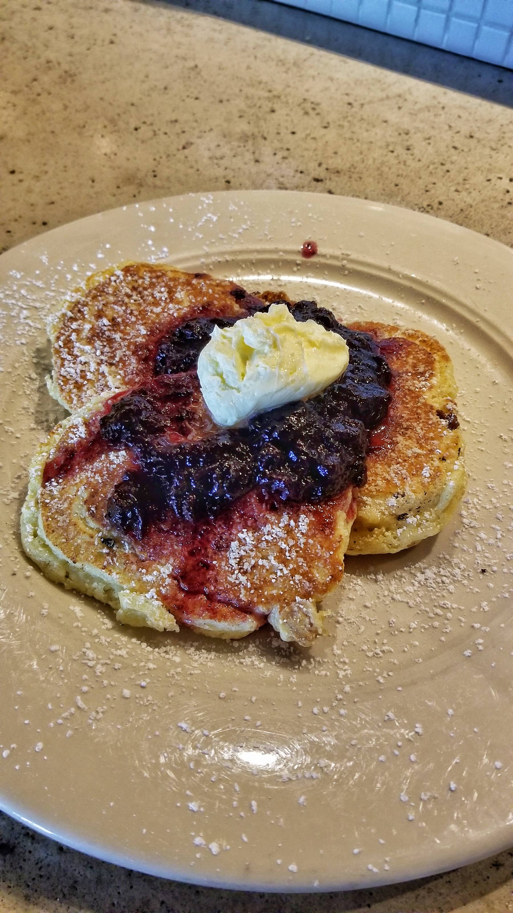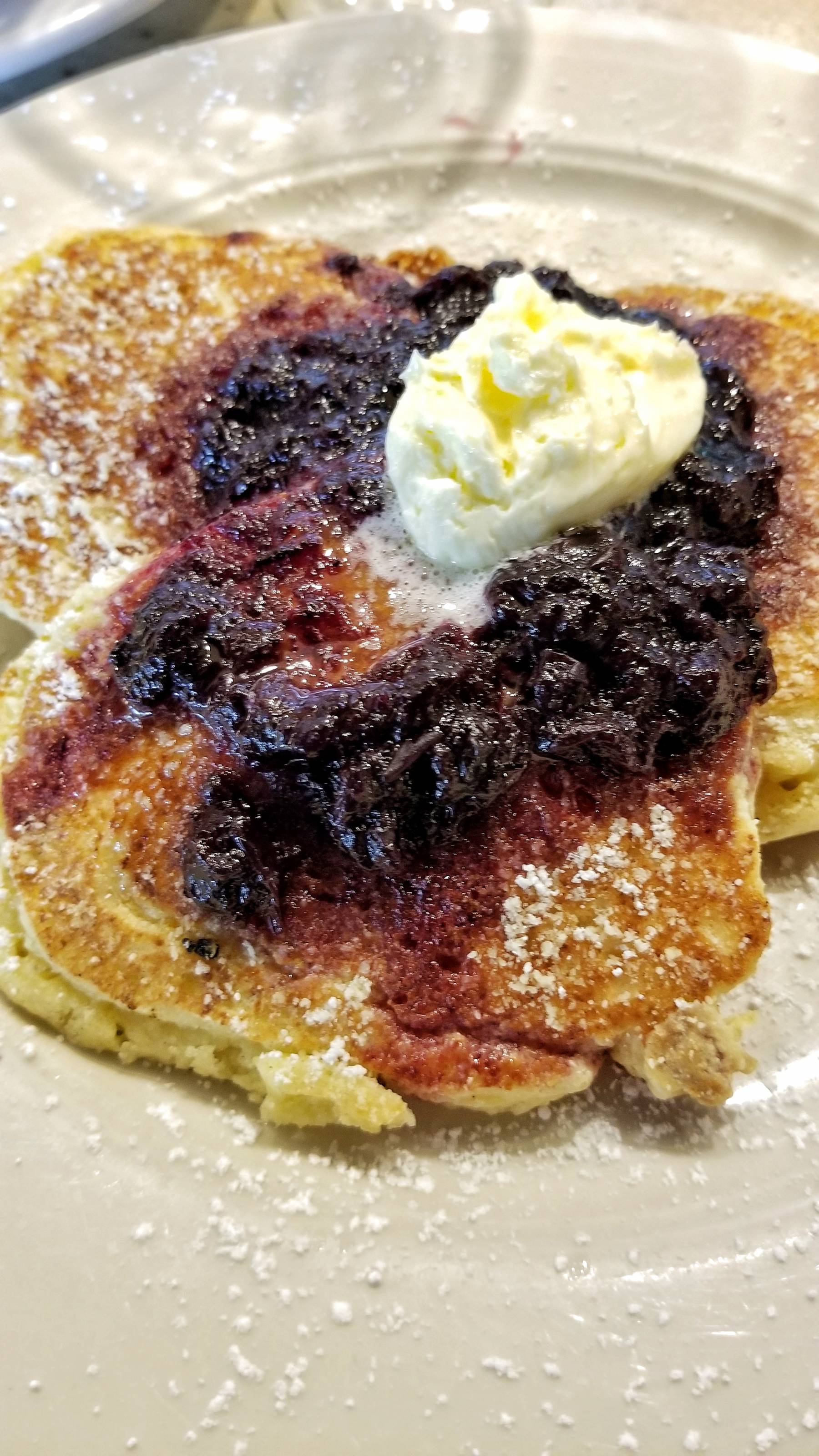 There were a couple dishes I wanted to try, so I did! The Lemon Soufflé Pancakes were yummy. The moist fluffy pancakes had a nice balance of sweet and tart. They were topped with blueberry compote and whipped butter.