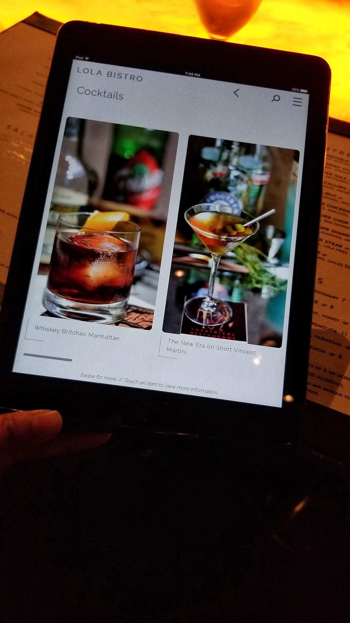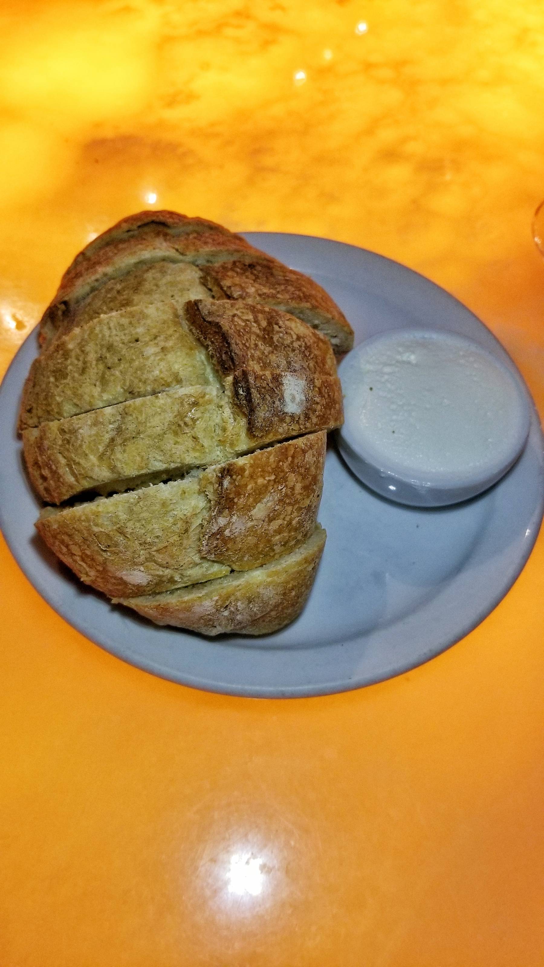 I browsed through the cocktails on a tablet and ordered a nice bourbon cocktail, then things started off with some bread and butter.