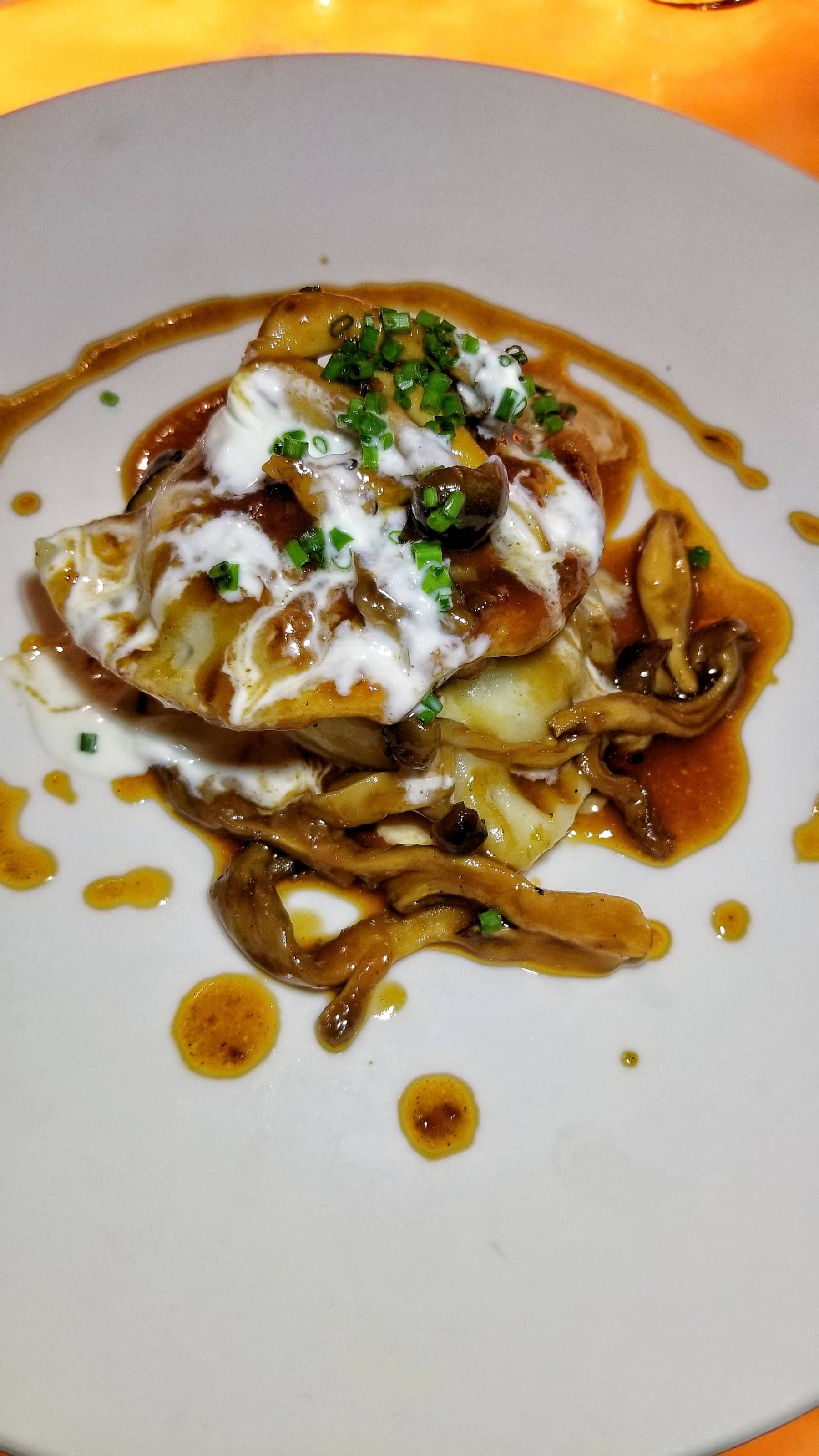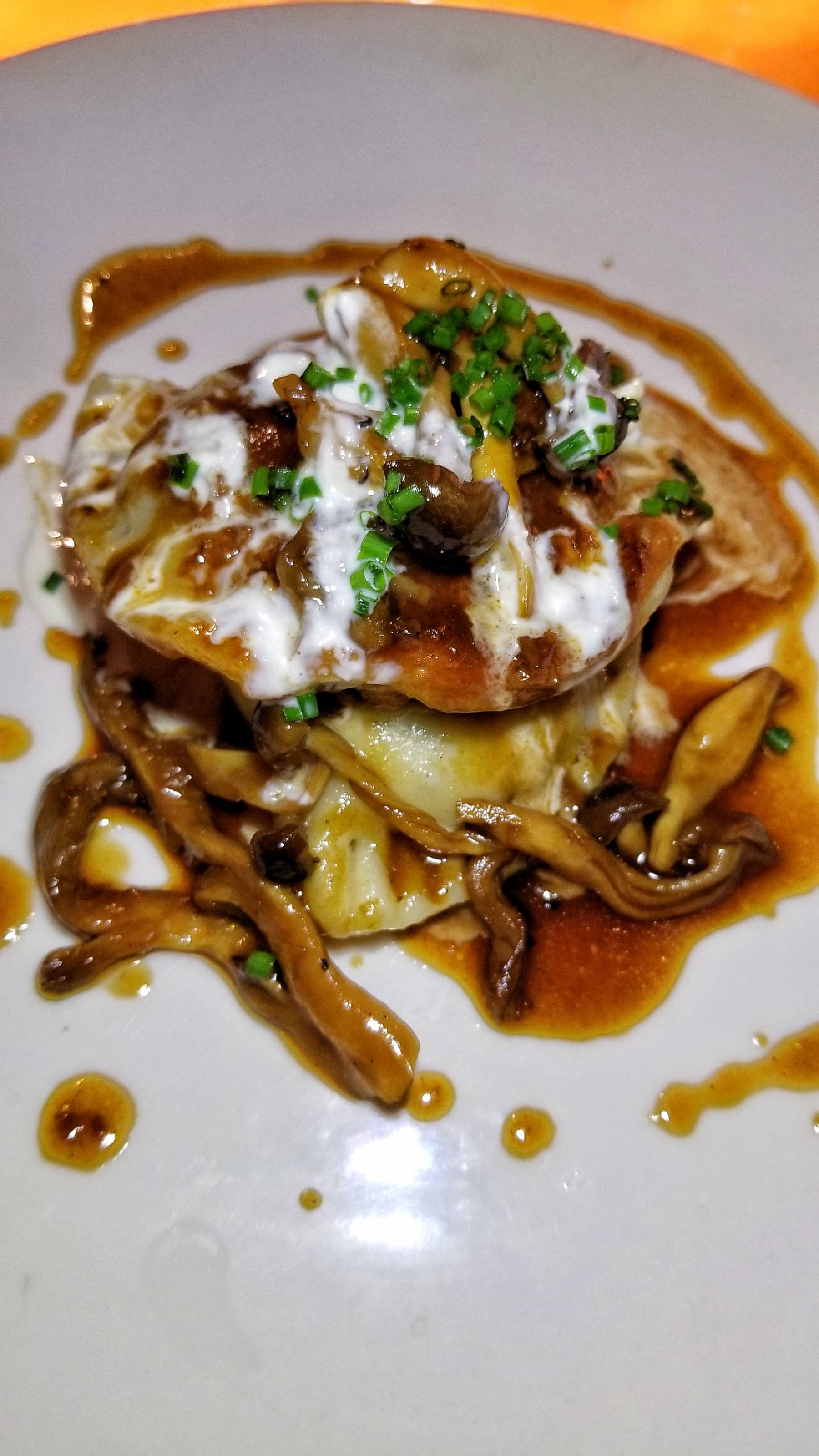 For an appetizer, I ordered the iconic Beef Cheek Pierogi. The eastern European dumplings are a beloved staple of the city’s cuisine and this was a unique take on them. The shredded beef filling was juicy and tender. The pierogies were topped with a savory sauce, mushrooms and horseradish crème fraiche.