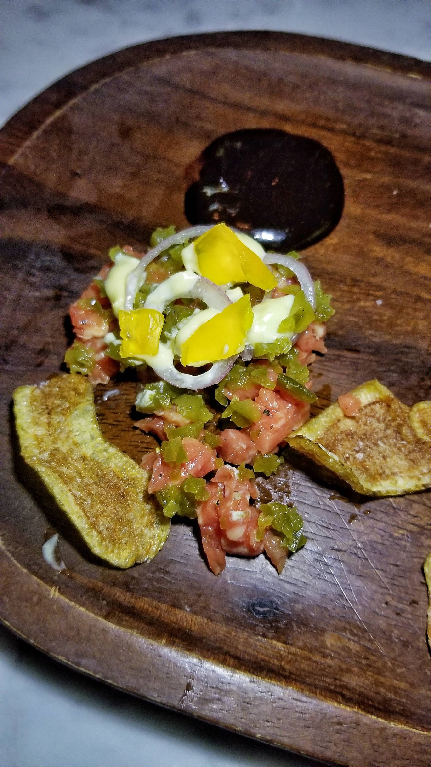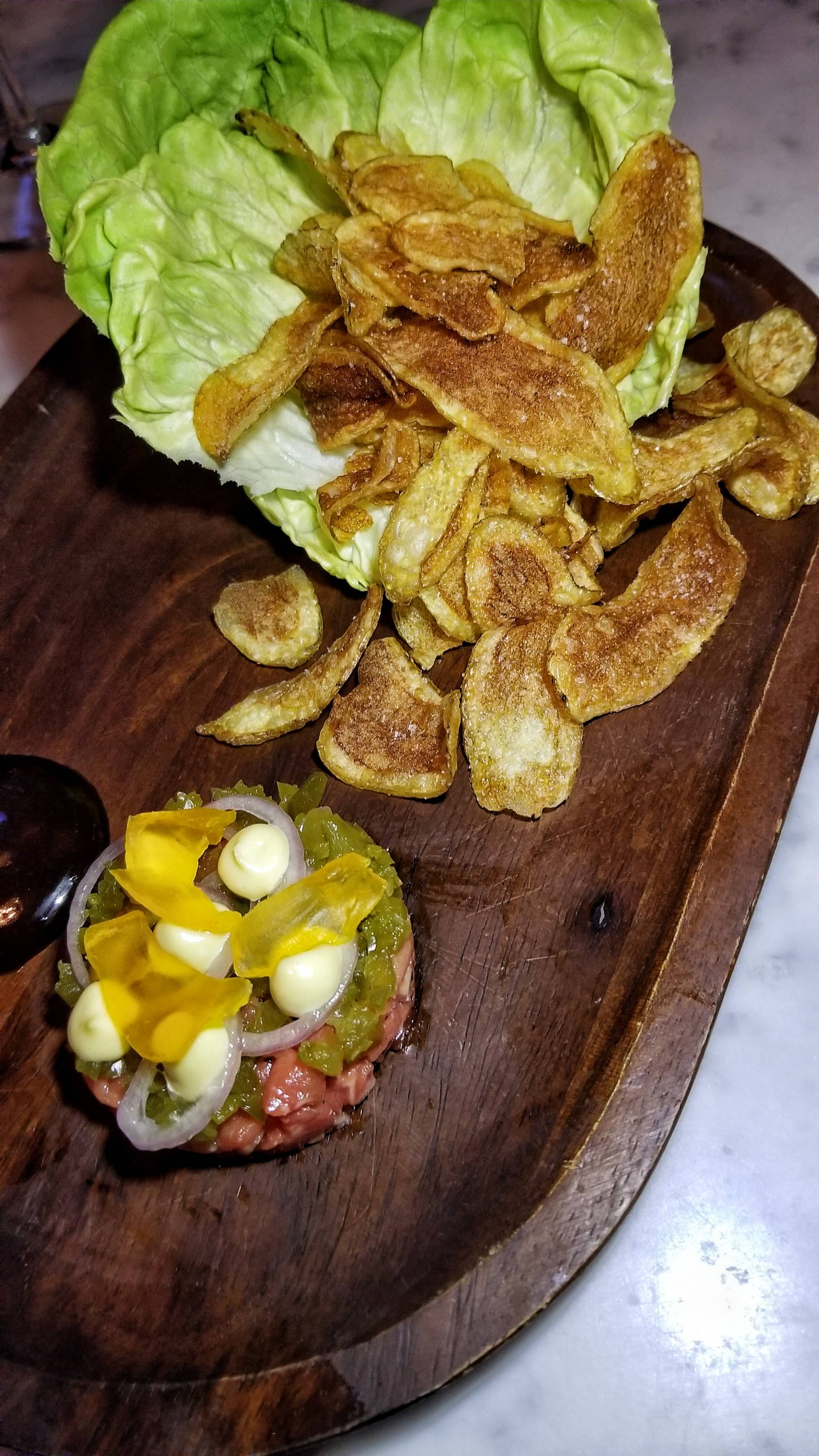 The 6-course tasting was fairly generous since the first course consisted of a series of snacks. Things began with a tasty Oyster with bloody mary granita and dill followed by their amazing Beef Tartare with oyster aioli, cured egg yolk, black garlic, butter lettuce, and salt & vinegar chips.