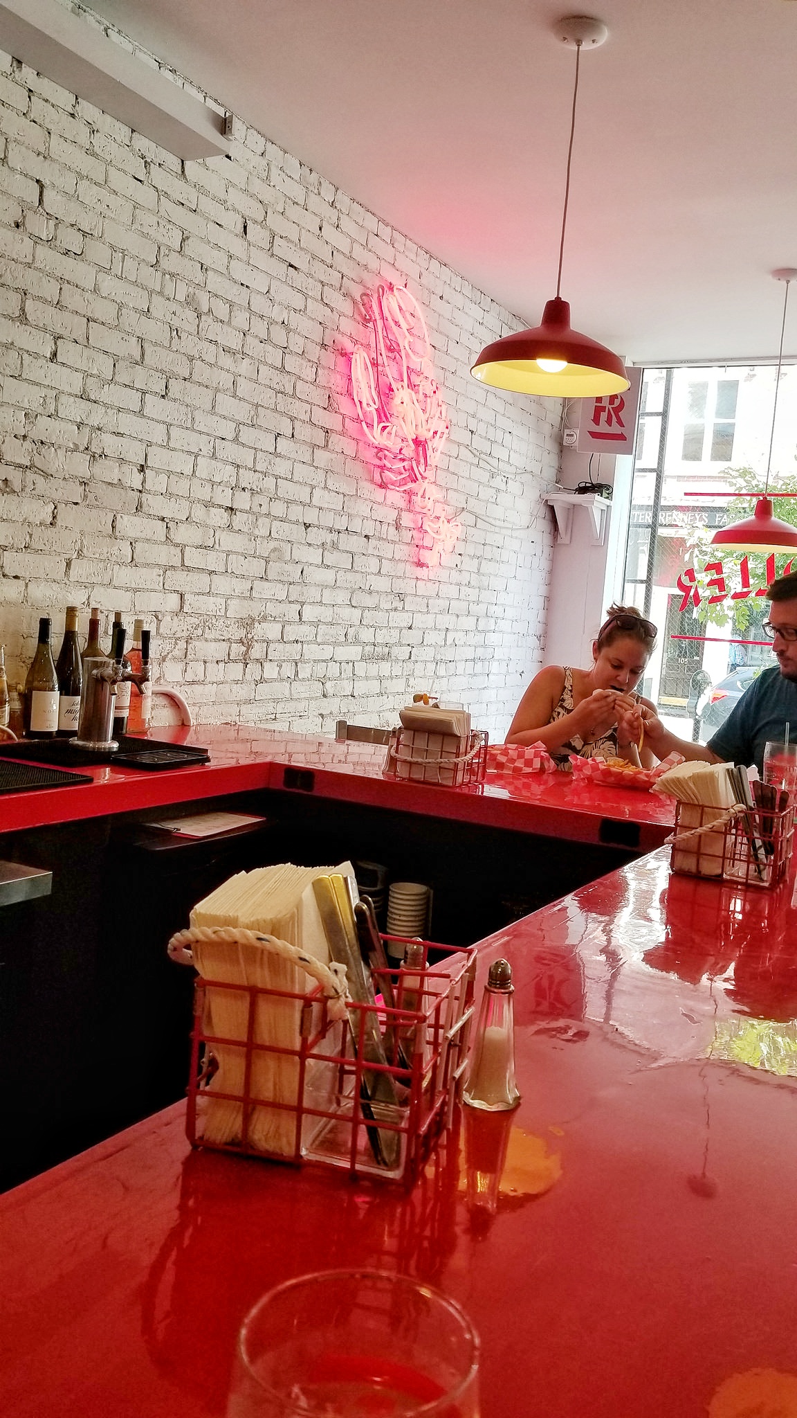As soon as you walk through the doors, you place your order at the counter then find a seat. I just couldn’t decide at the moment and sat at the bright red bar where I was given a menu. They had a nice selection of local brews, but I saved the beer drinking for the brewery hopping I planned to do afterwards.
