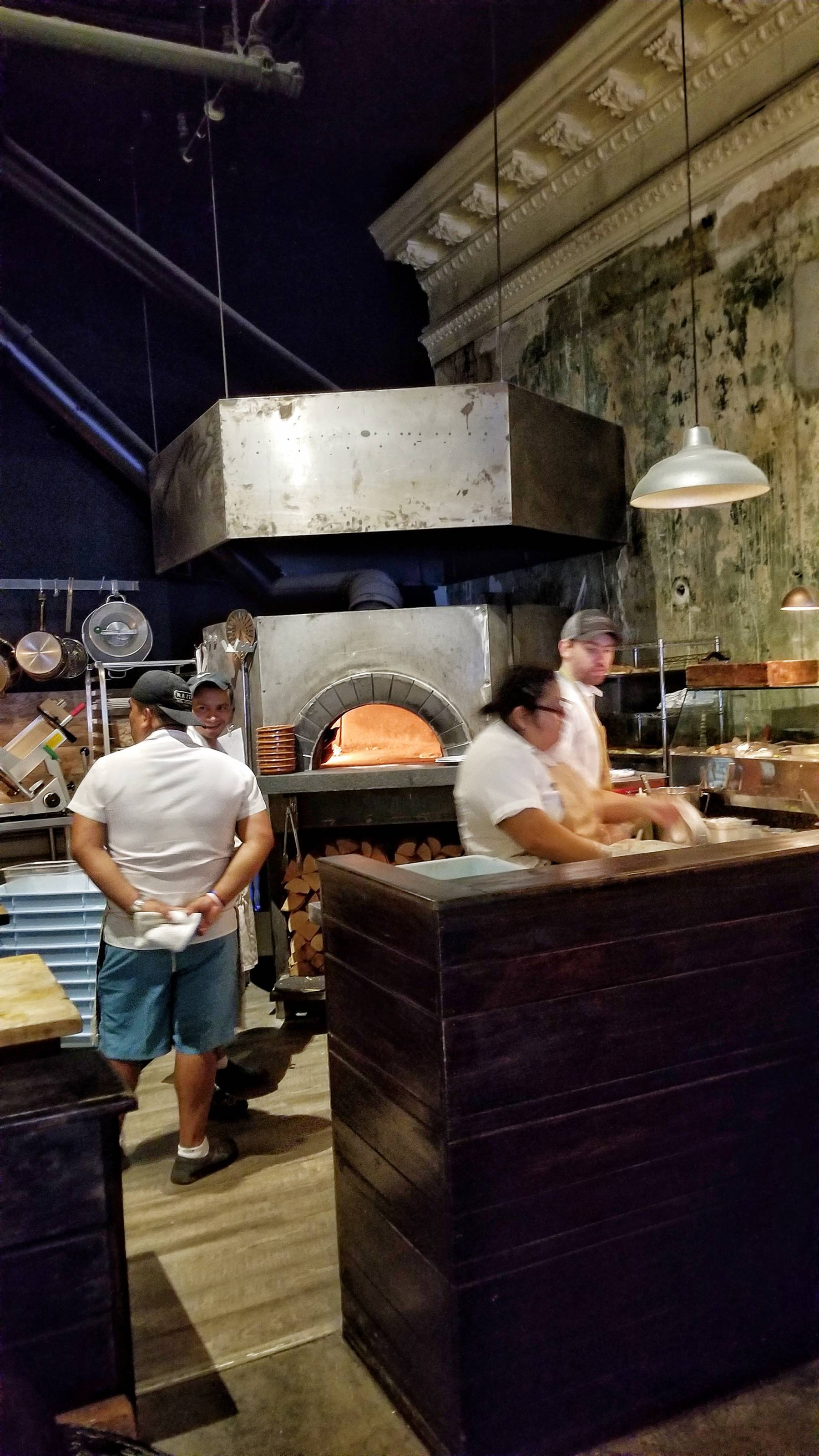 Doors opened 5:30pm on the dot. We walked into the small dark restaurant and were seated at a table near the open kitchen with a view of the magical woodburning oven. The entire place was quickly occupied and the line now extended around the corner of the block.