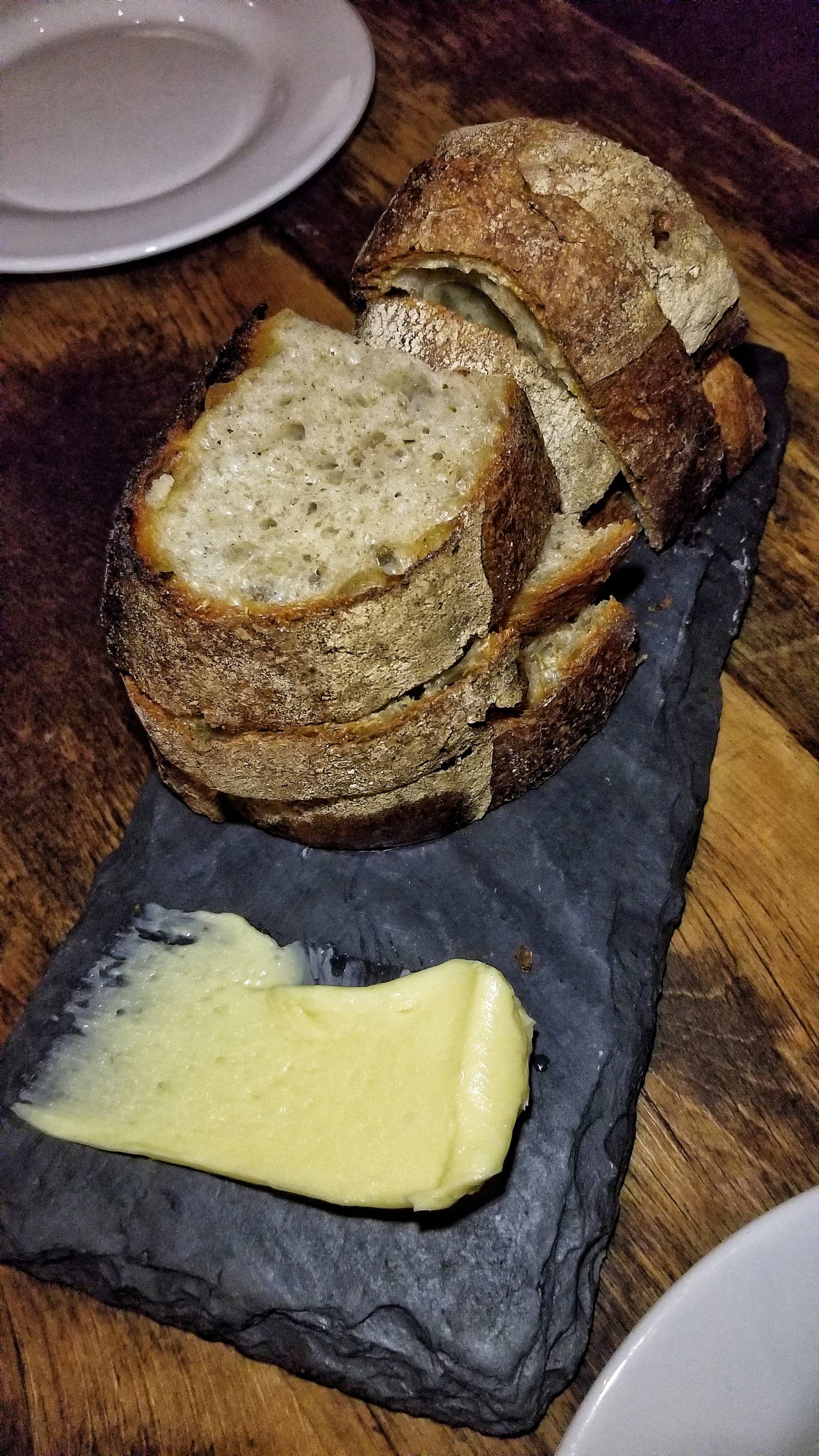 I ordered a glass of red wine and we started off with the Bread & Butter. Both the bread and butter are handmade. The creamy cultured butter comes from grass-fed Pennsylvania cow’s cream.