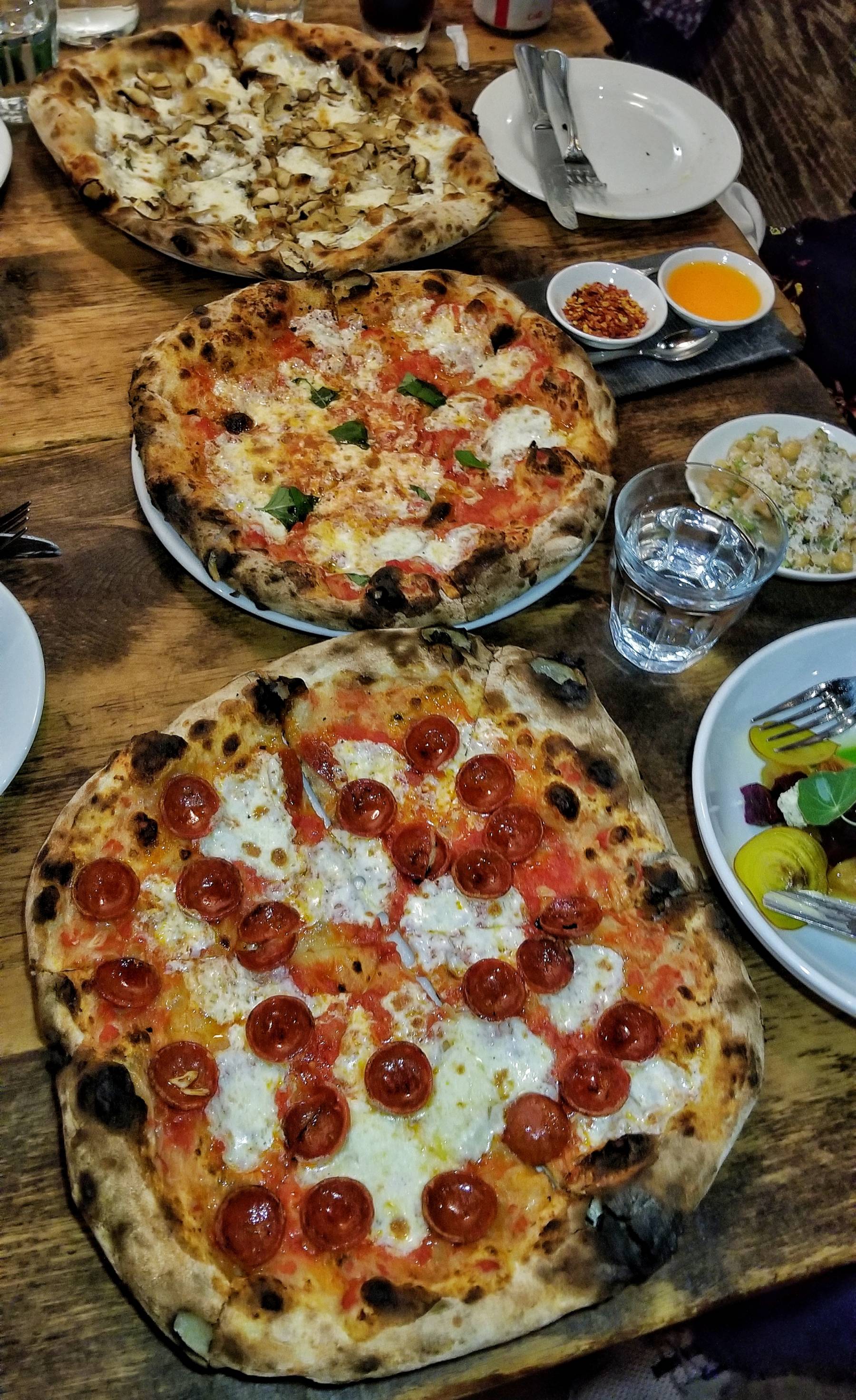 It was time to order what we mainly came for, the pizza! The artisan wood-fired pies feature seasonal high quality ingredients. The flour is milled in Clifton. Every ingredient is hand-picked. They even grown their own yeast culture. We ended up trying 3 different pizzas.