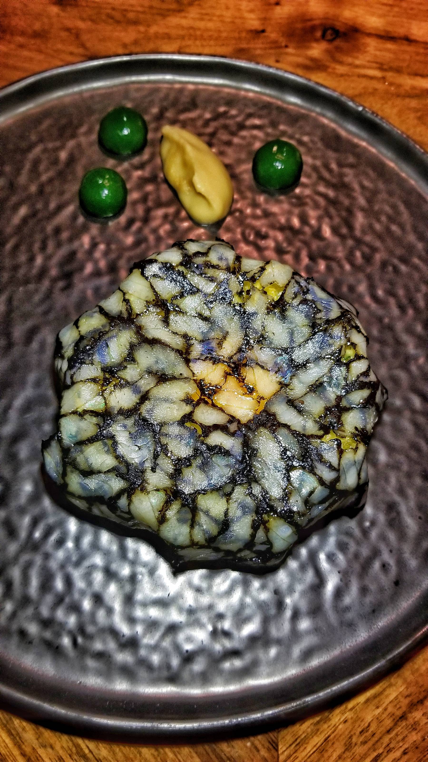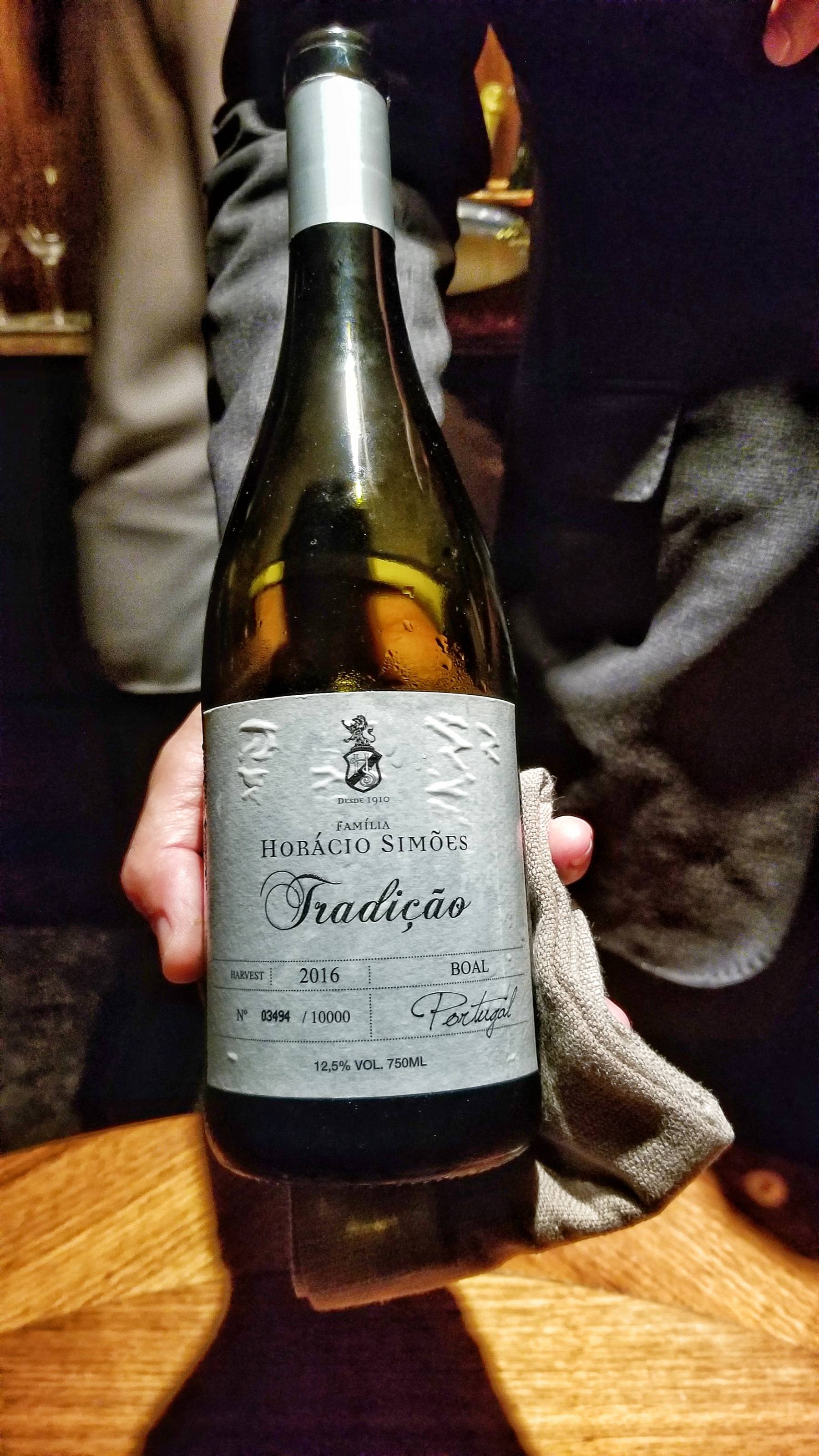 They offer two tasting menus, but it was a rare instance where I skipped the tasting and ordered a la carte. I was asked about drinks and let them suggest a couple wines to enjoy throughout the meal. It started off with a Horácio Simões Tradição Boal White from the Portuguese wine region of the Setúbal Peninsula.