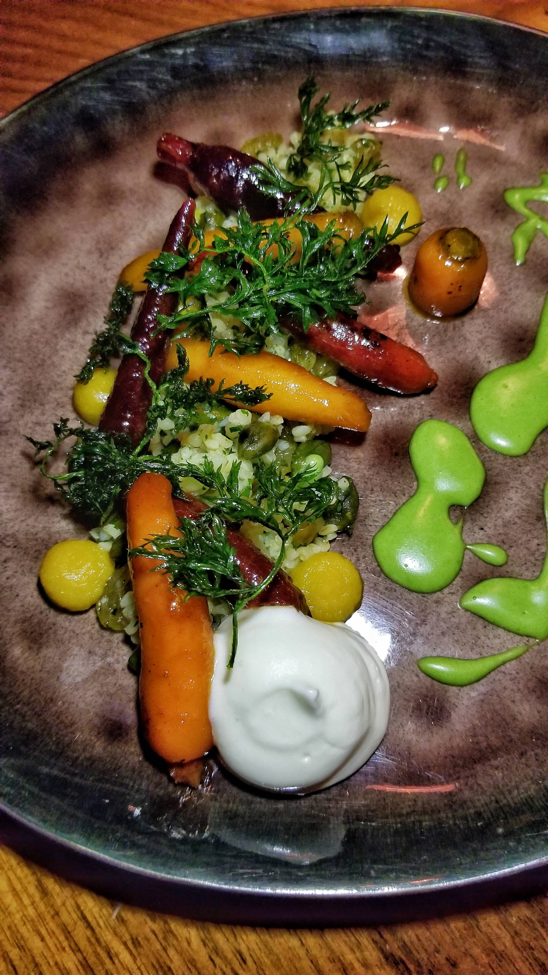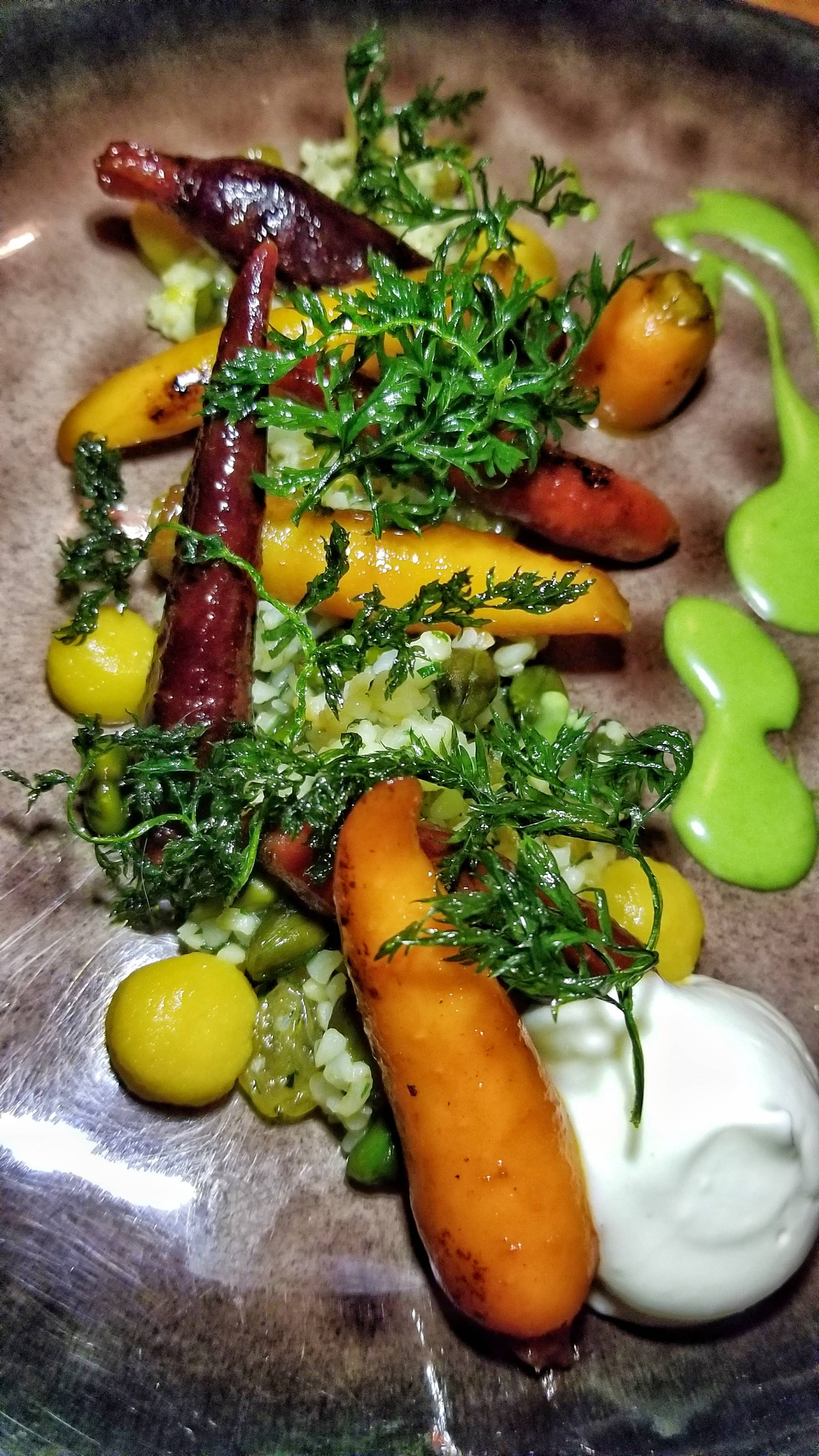 My first dish was the Glazed Baby Carrots with goat cheese, dried fruit bulgur (whole wheat grain), and cumin oil. It was colorful, fresh, and delightful. I’m not a big fan of goat cheese and still enjoyed the dish.
