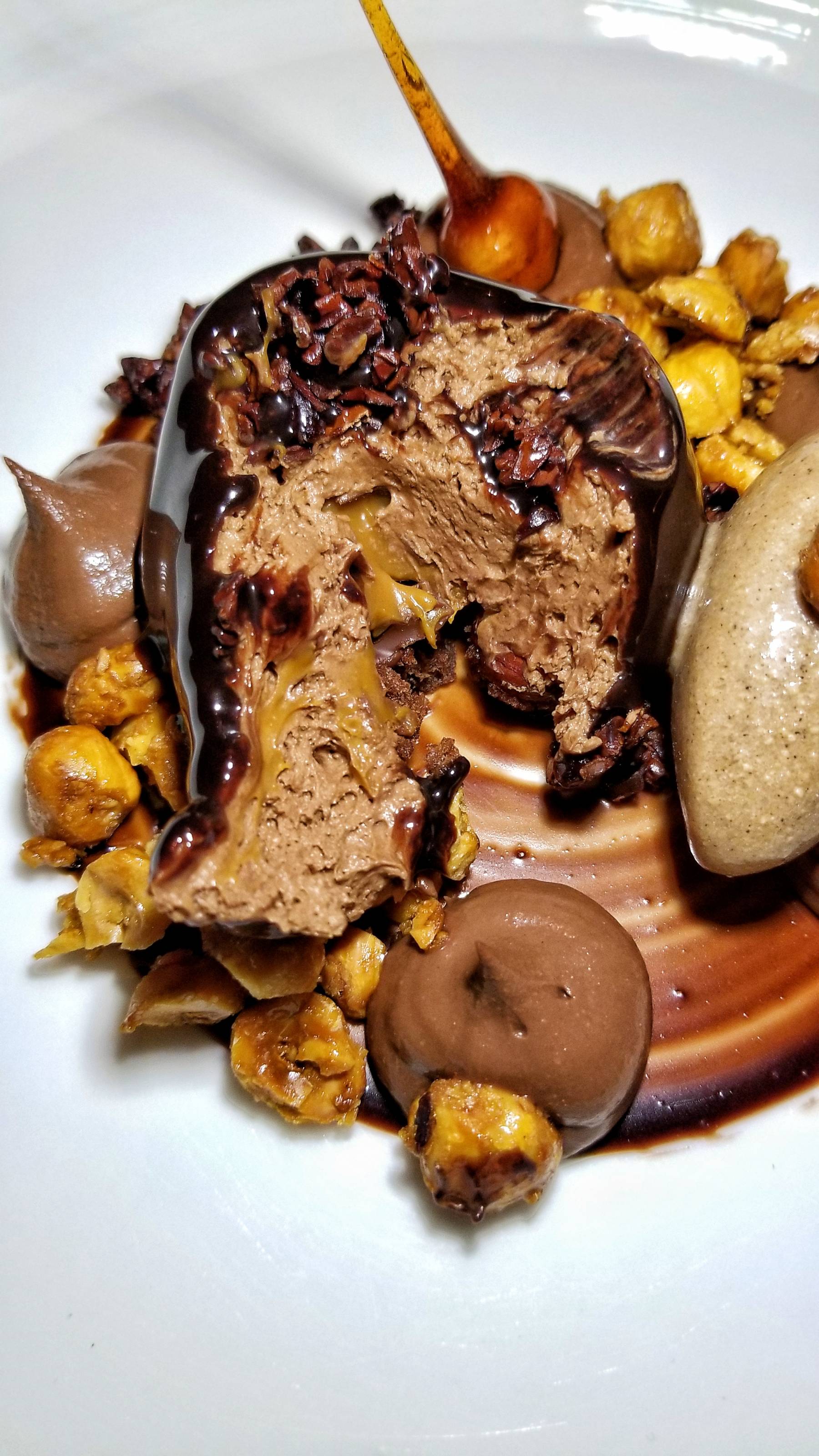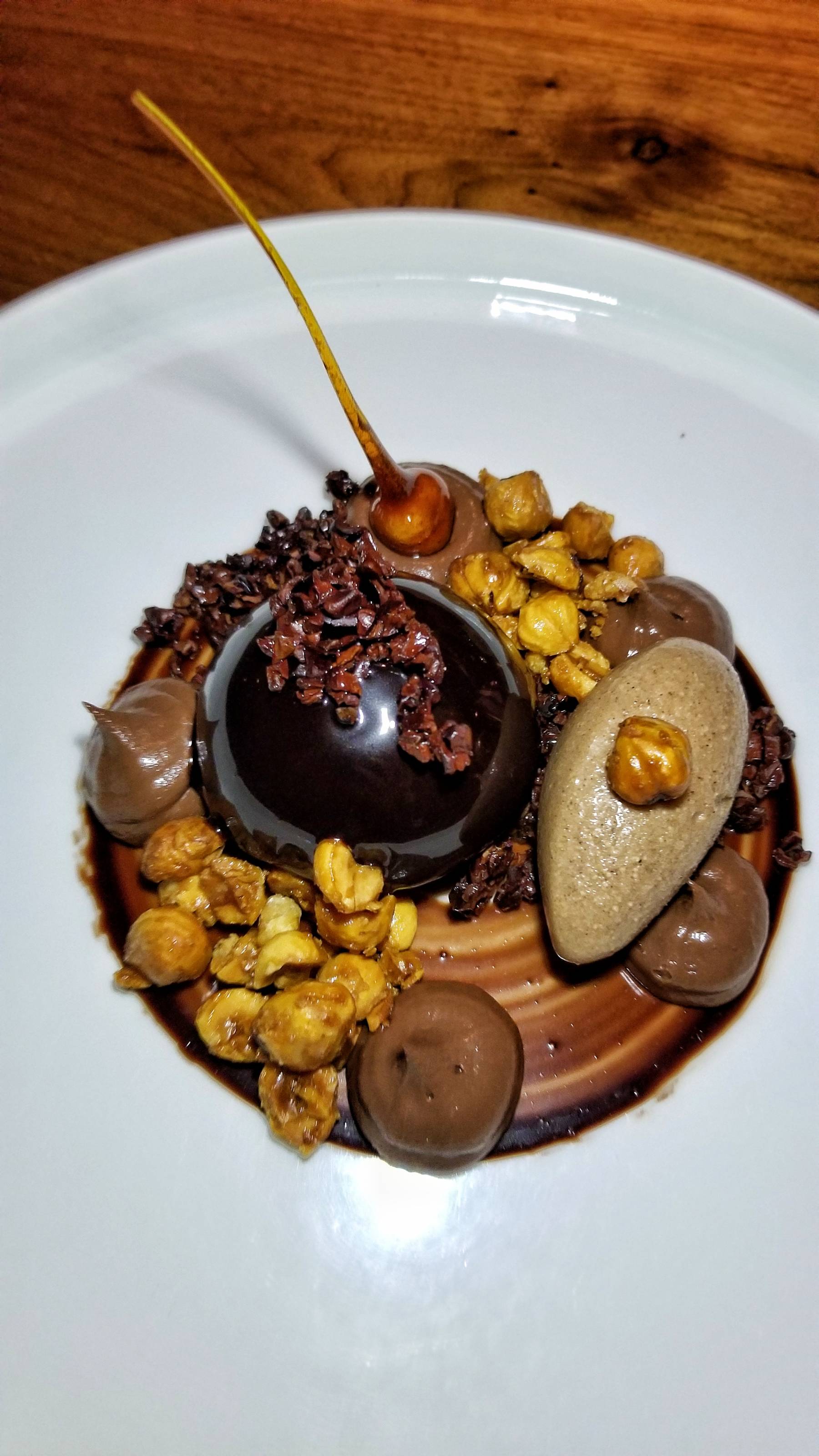 For dessert, I had my heart set on the Chocolate “Bomb”, another signature dish of Alma. The beautifully presented rich creation of chocolate mousse, hazelnut sorbet, salted caramel, and crunchy hazelnuts was incredible.