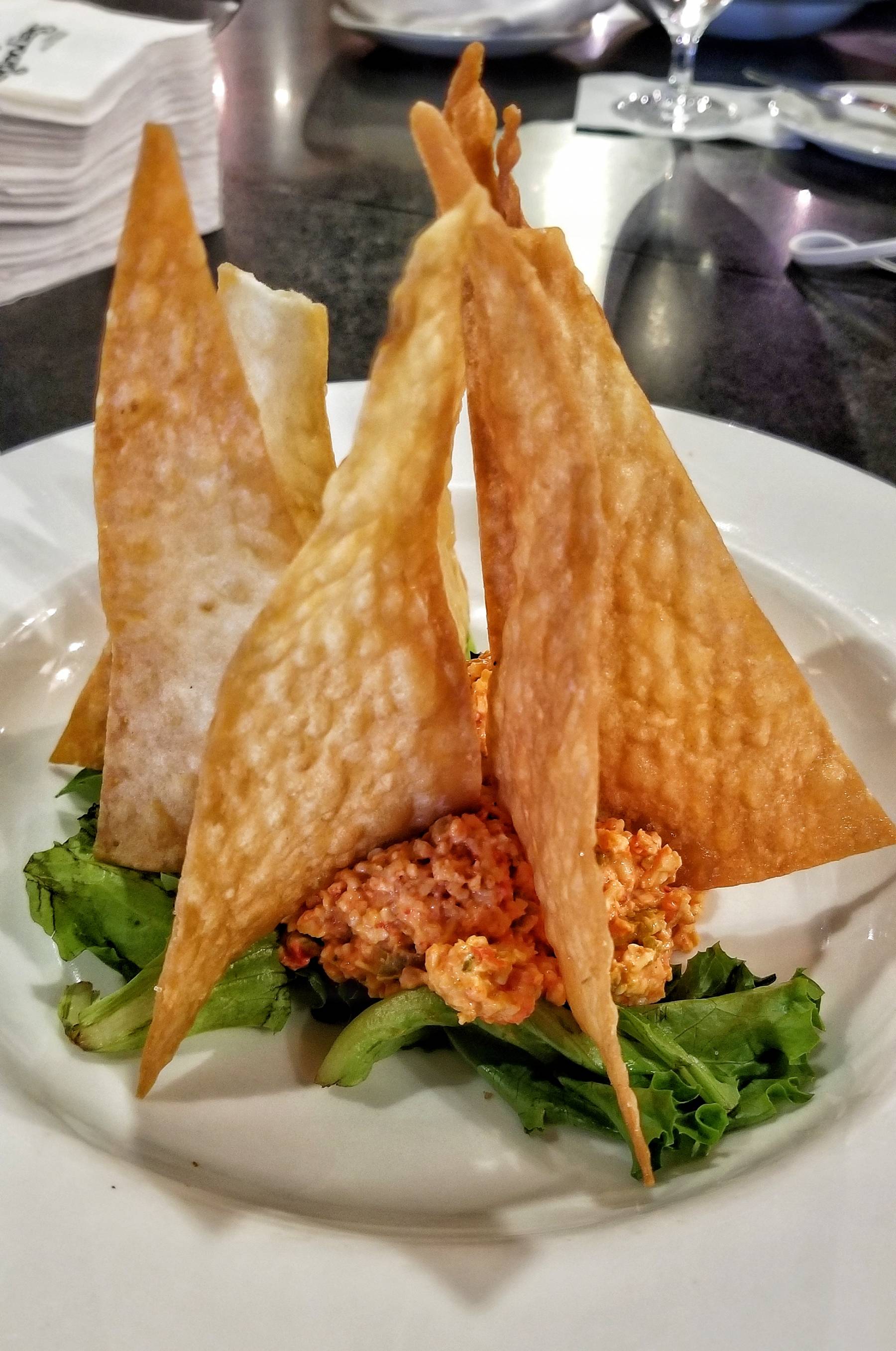 Since I had a a dinner reservation later, I skipped the Thanksgiving specials and tried a few appetizers instead. I started with the Housemade Pimento Cheese with Charleston flatbread and the yummy Fried Green Tomatoes over white cheddar grits with country ham, caramelized onion chutney, and tomato butter.