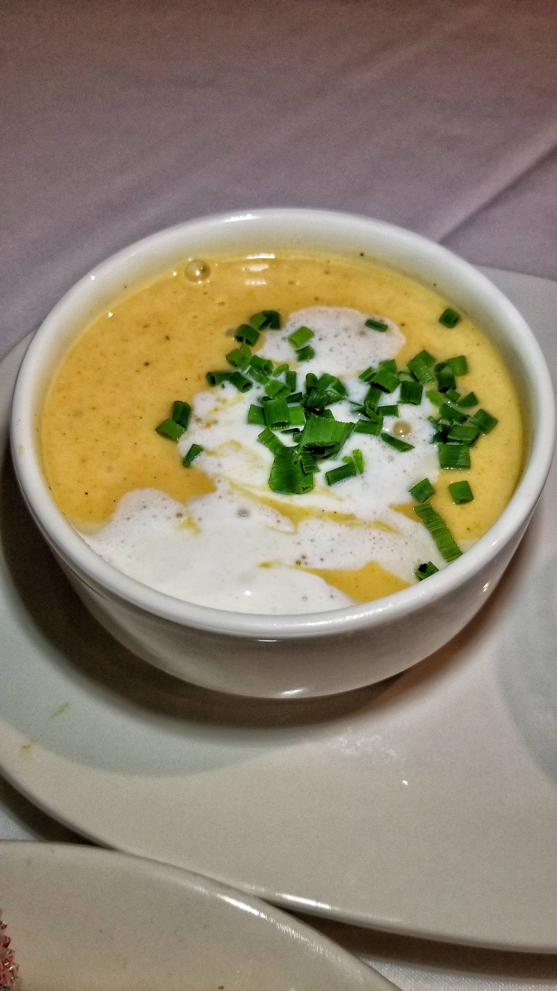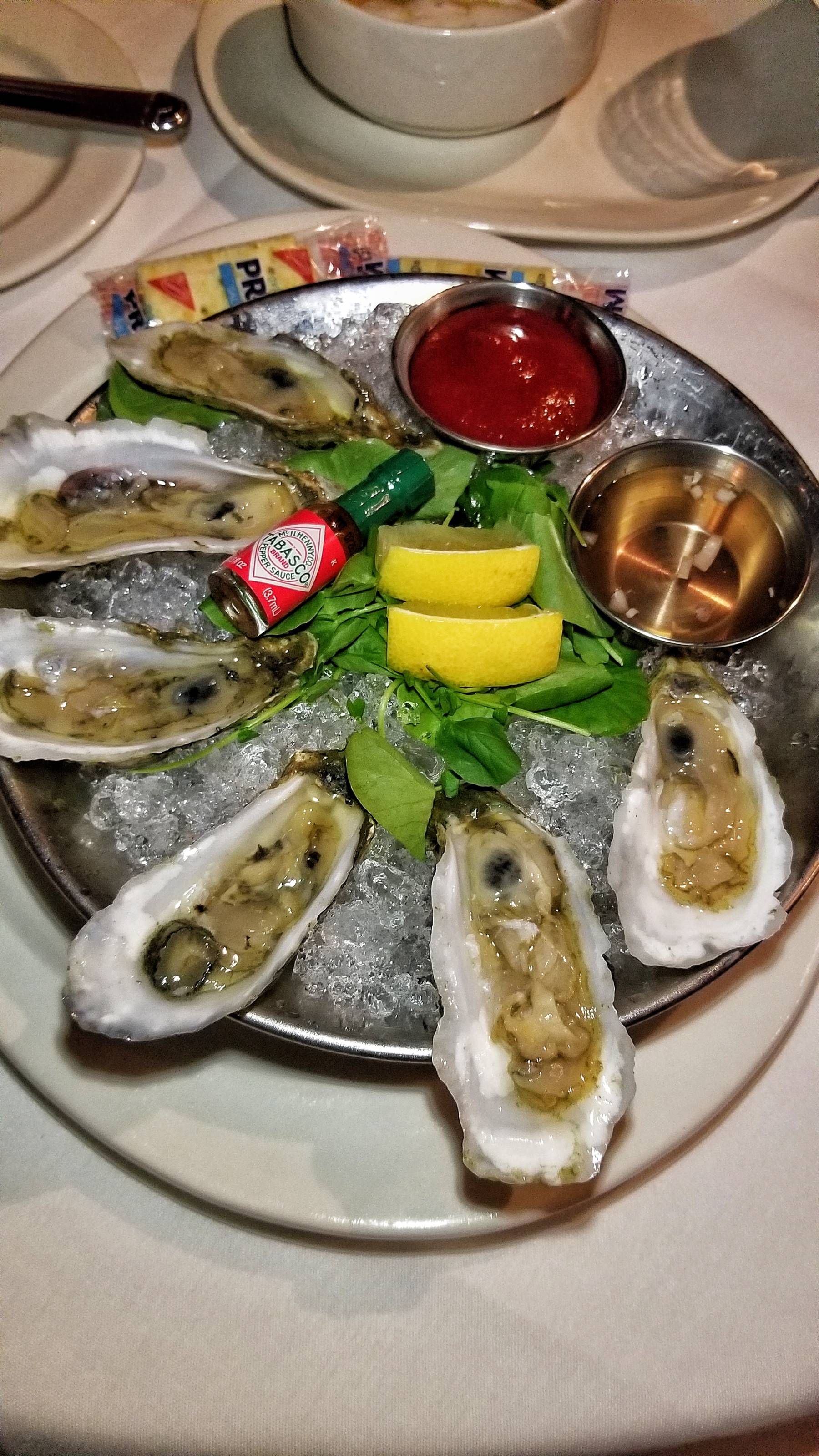 I ordered half a dozen Oysters on the Half Shell served with cocktail sauce, mignonette, lemon, and Saltines. They were very fresh, local, and really good. I also had the delicious Charleston She Crab Soup which had lump crab, sherry cream, and chives.