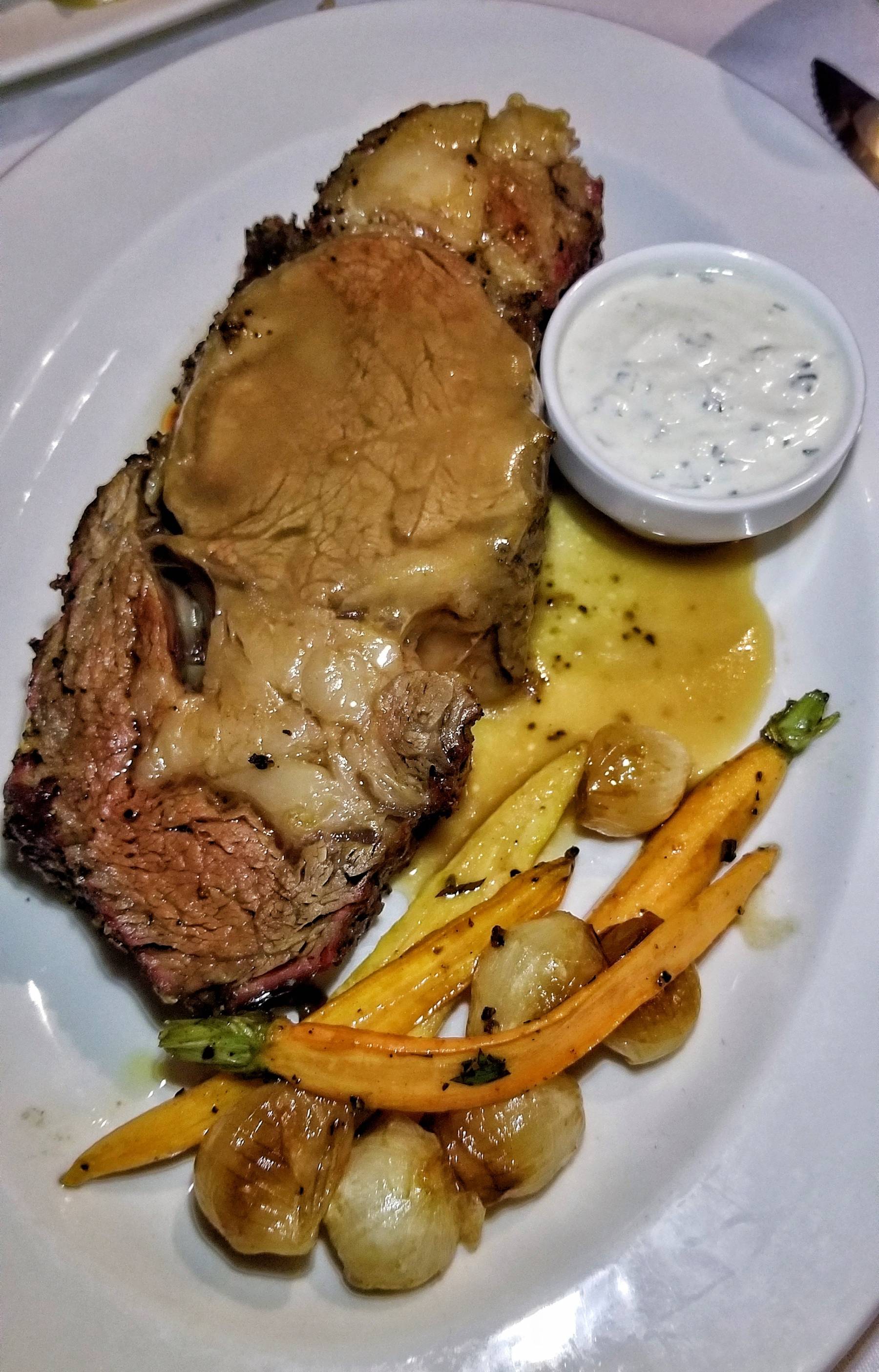 I also ordered the Roasted Prime Rib because I wanted to feel like I was back home where my family eats a ridiculous amount of different kinds of food. The prime rib was nicely cooked and had roasted pearl onions, carrots, au jus, and horseradish cream.