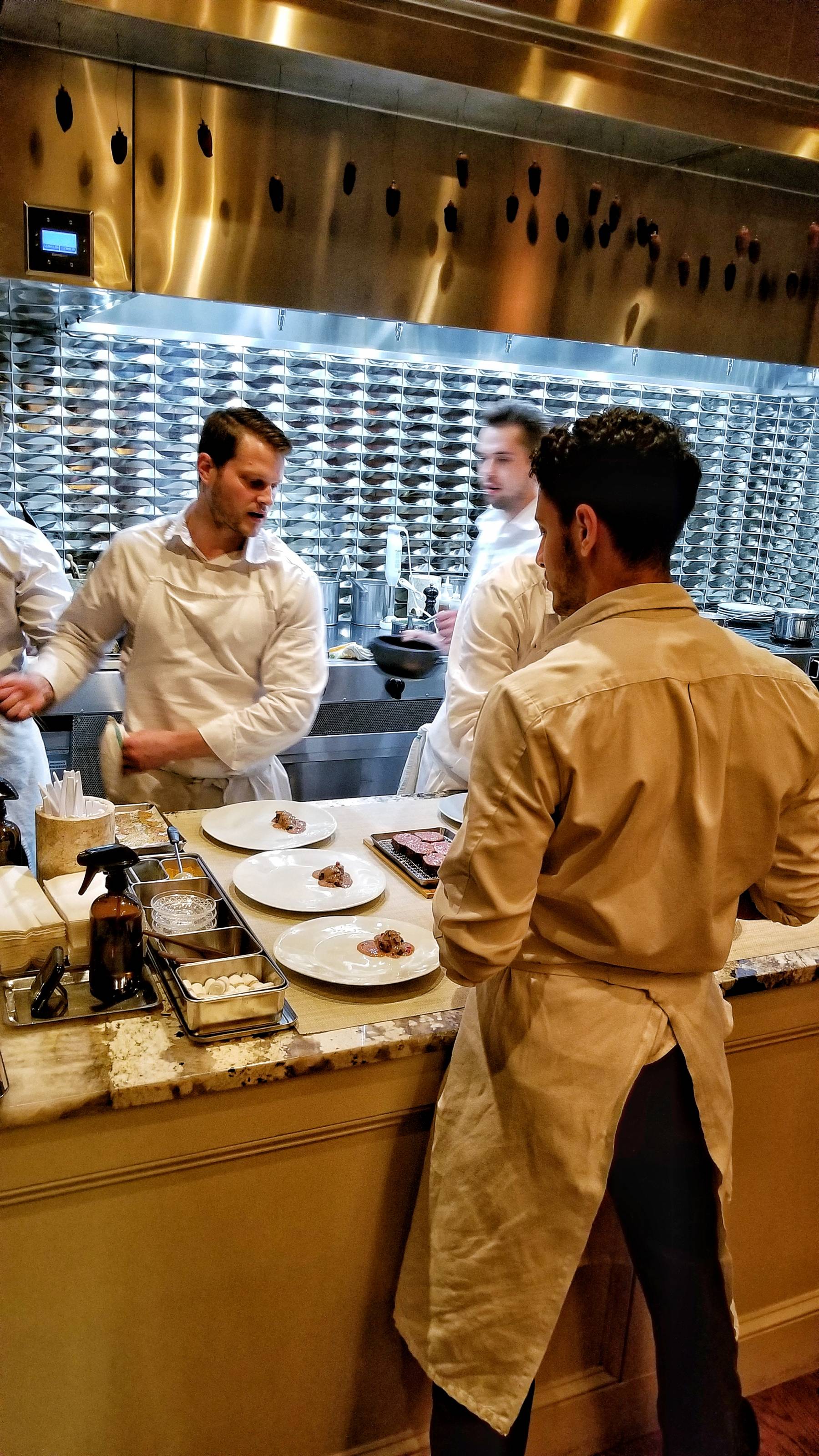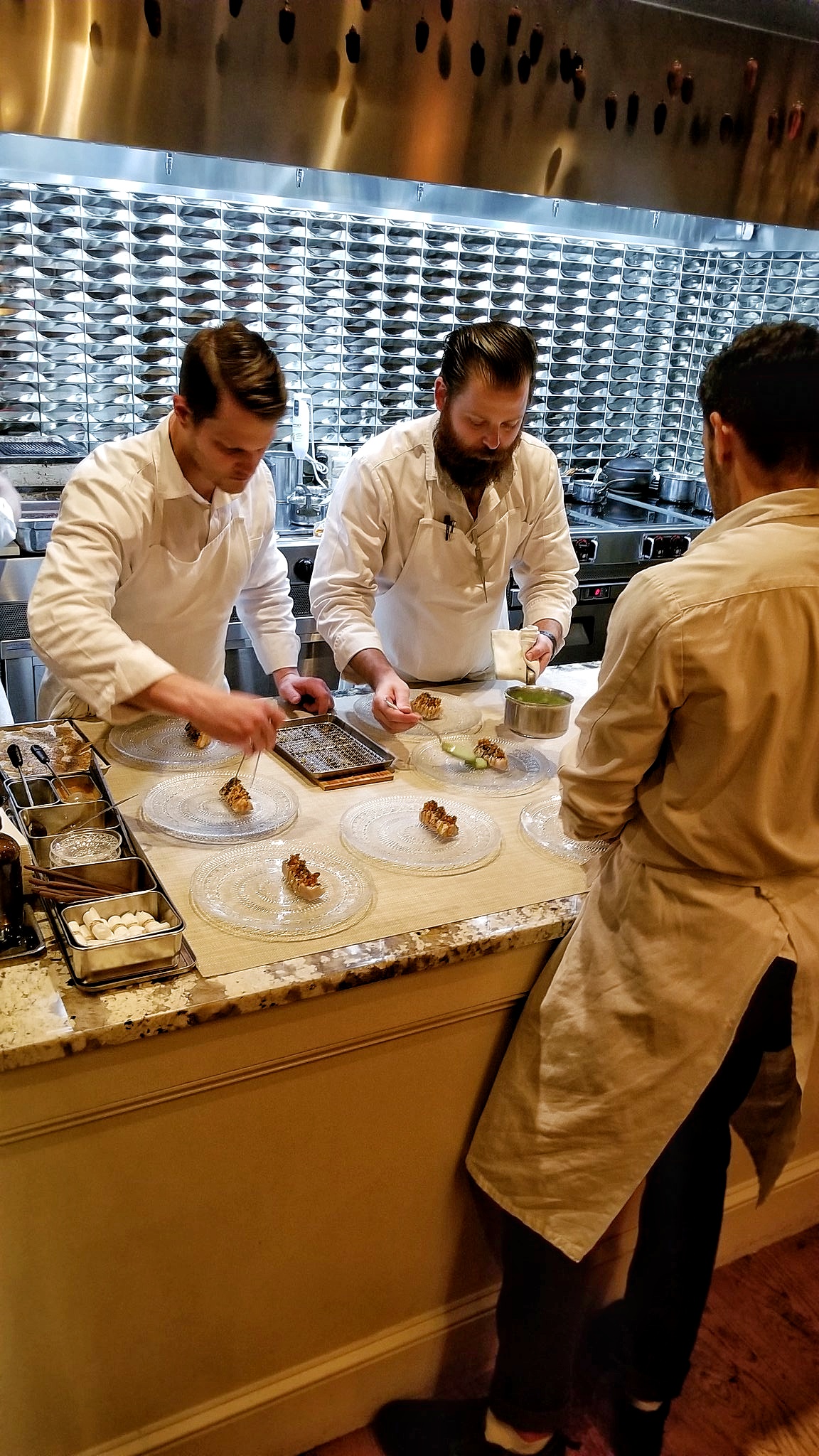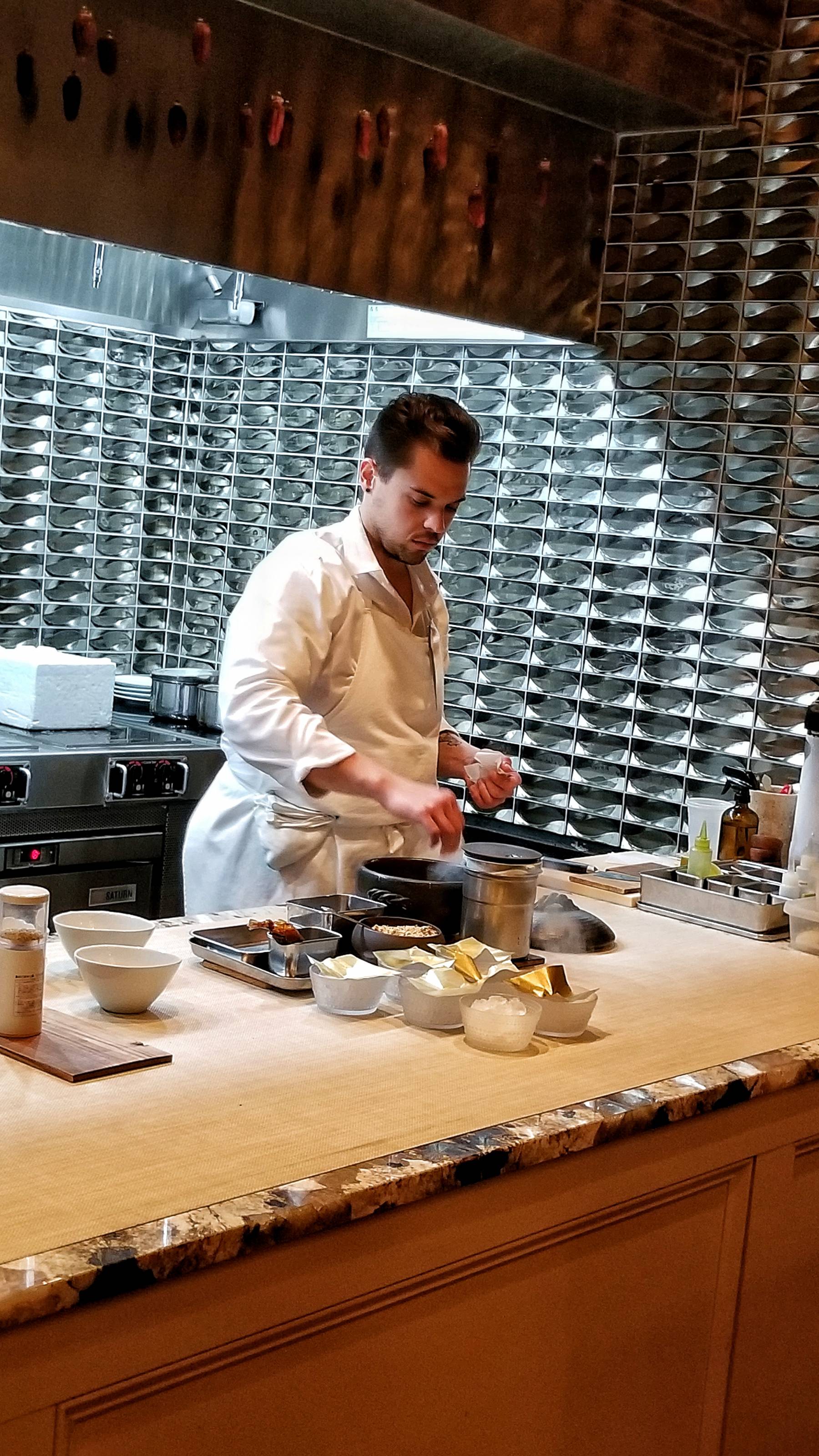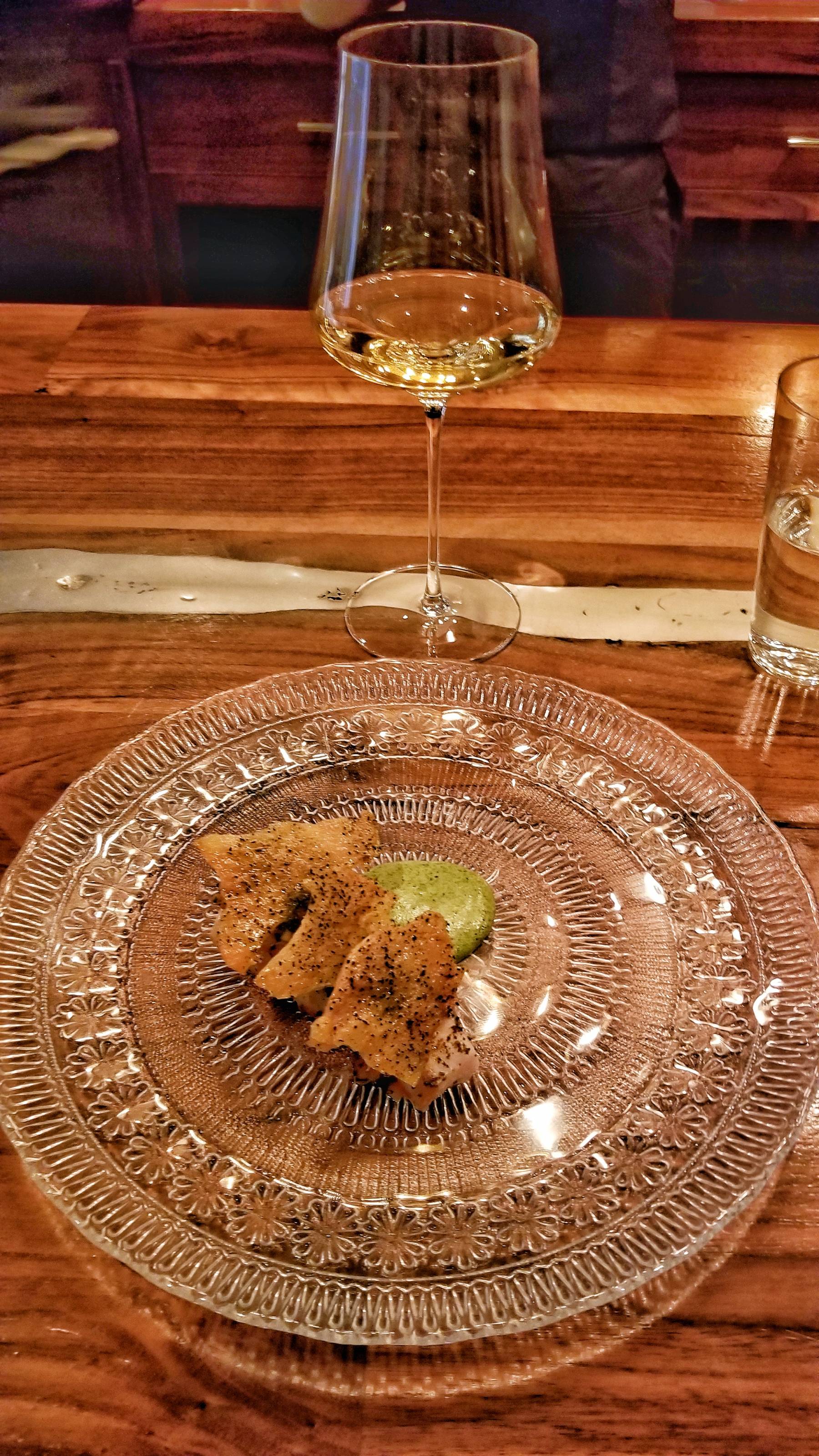 I was seated in the first chair closest to the kitchen and appreciated the close view of the talented chefs creating every dish. The tasting menu costs $125 per person. The wine pairing is $80 while the reserve pairings are $160. I went with the regular pairing.