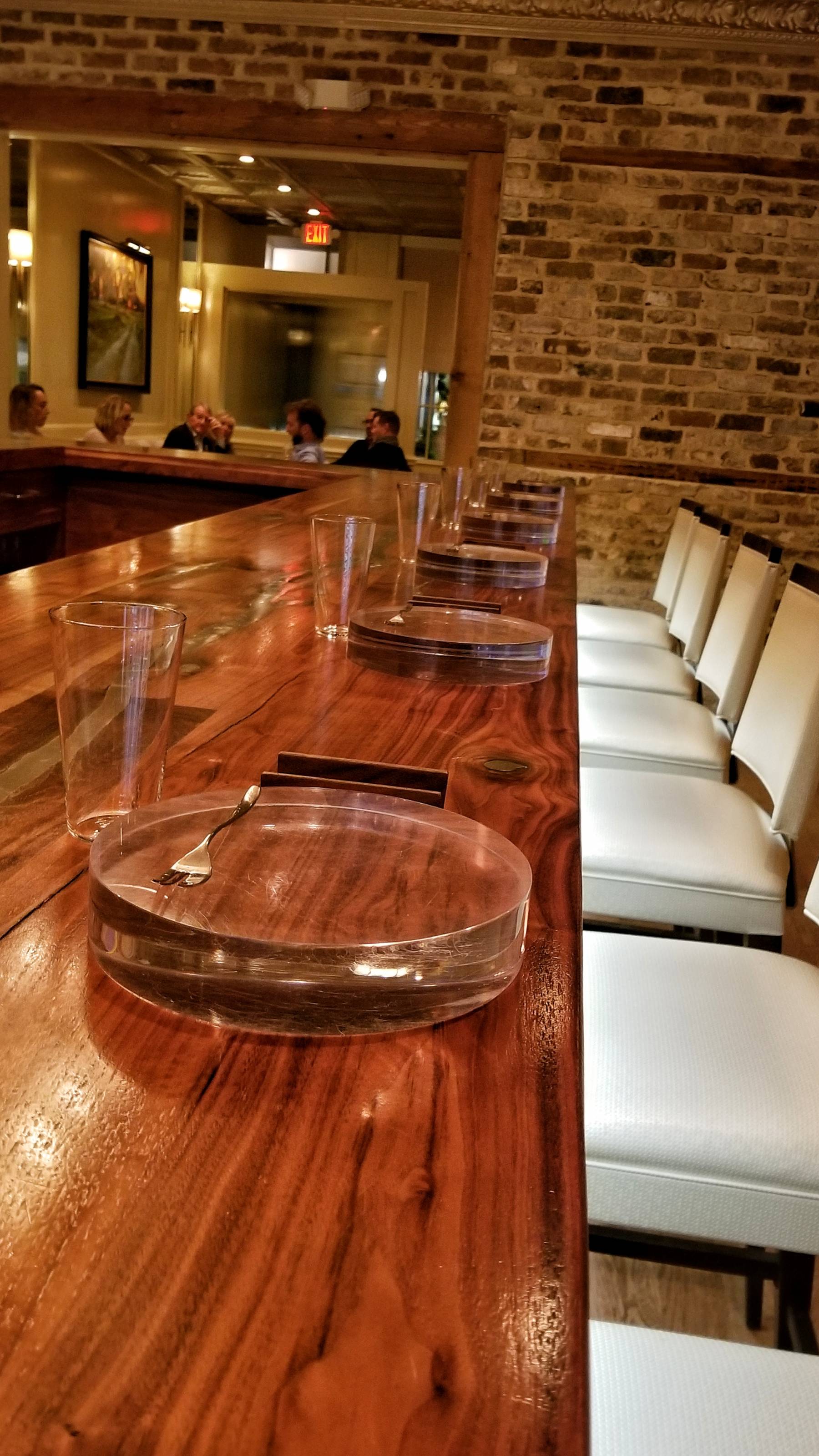 For my final night in Charleston I reserved a seat at McCrady’s restaurant. The intimate dining room features an open kitchen and large u-shaped table with 14 seats. The entrance is located within a downtown alleyway where you enter McCrady’s Tavern, but those who are there for the tasting-menu only experience are shown to the dining room in the back.