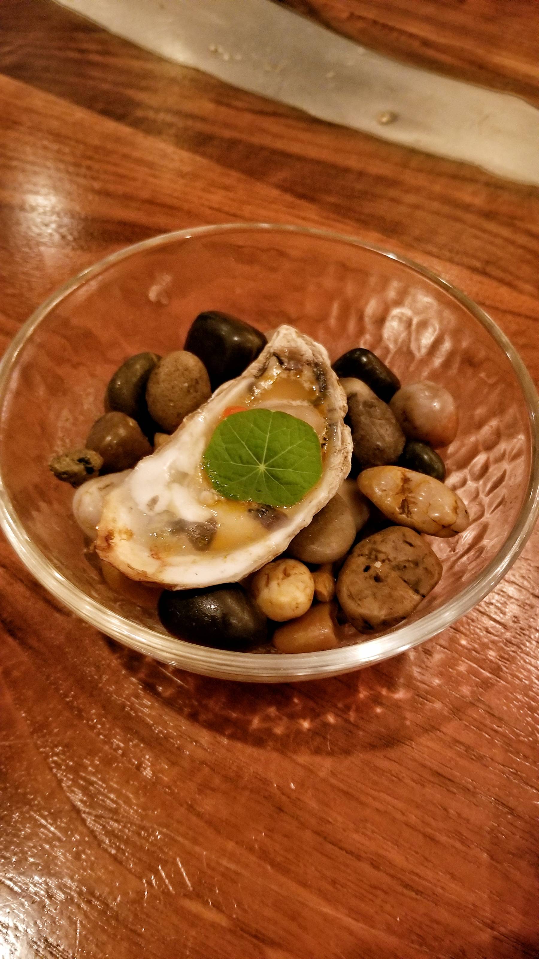 Things started off with a glass of sparkling extra brut rosé. The first few courses included a lovely Barrier Island oyster with aji dulce, yuzu with buttermilk, a carrot jerky, and a foie gras tart.