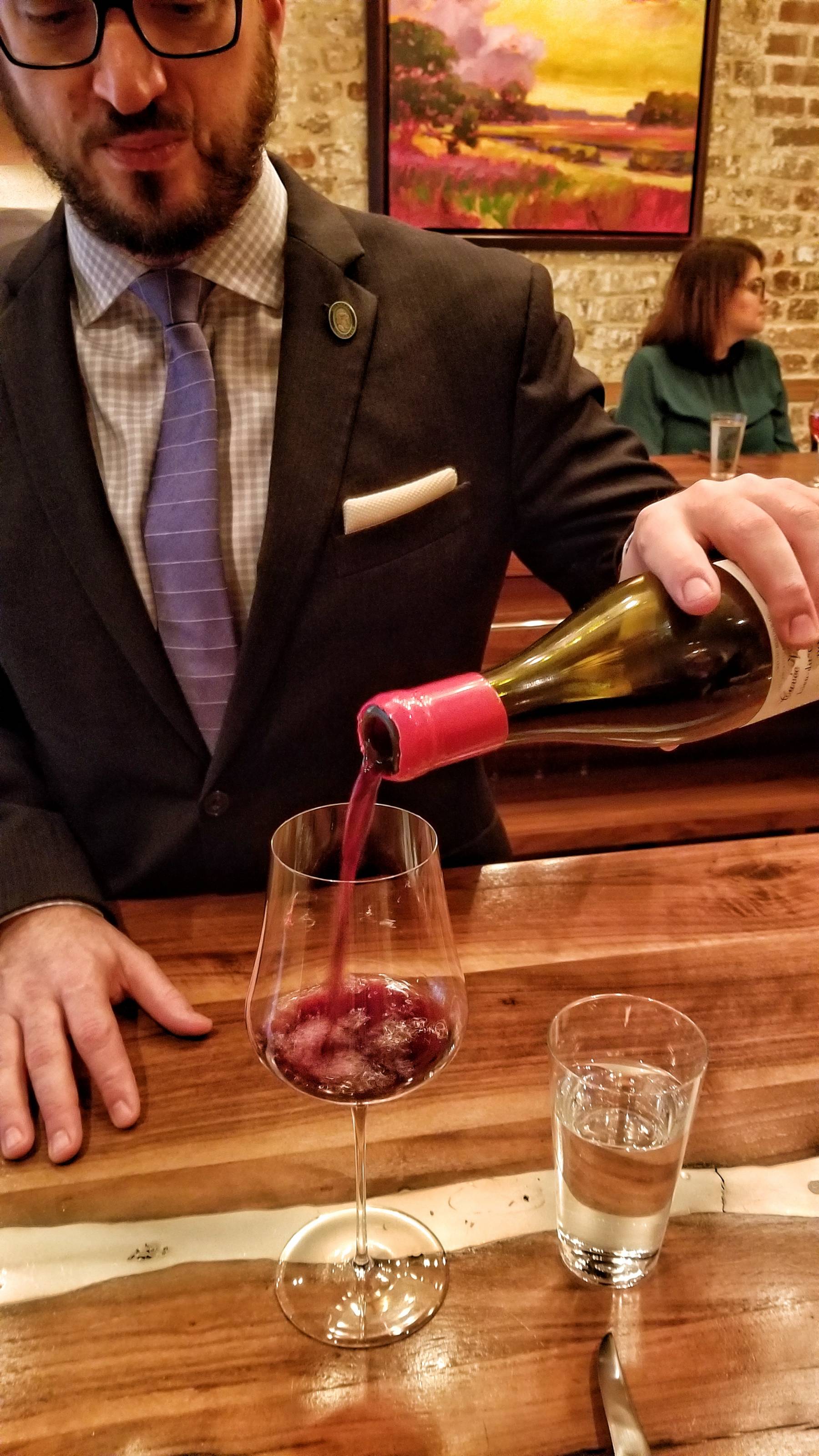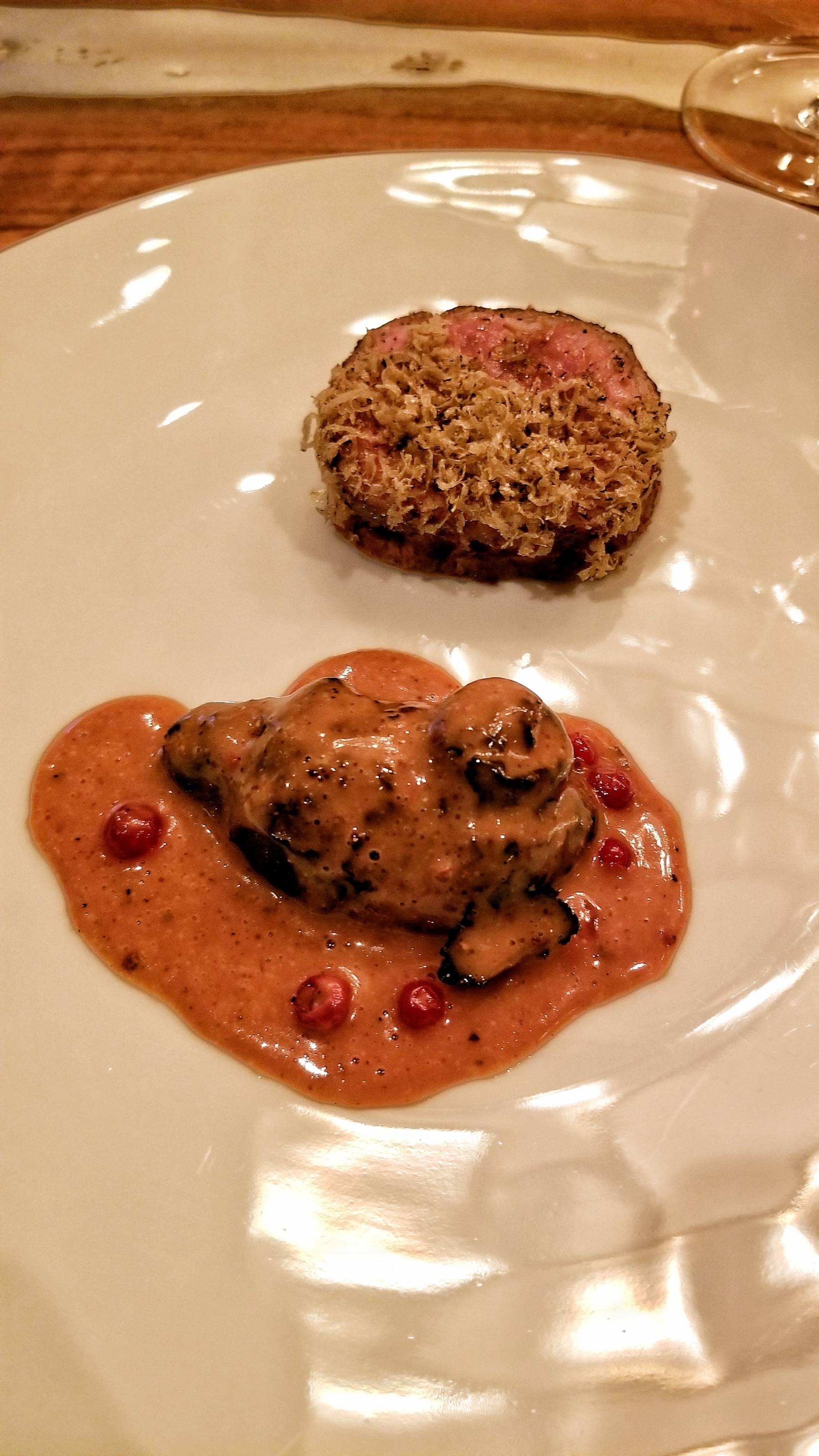 Up next, a chardonnay from Big Table Farm winery in Oregon’s Willamette Valley for the rice with benne seeds and horseradish foam. A red wine from France was paired with the aged beef with sunchoke and black truffle.