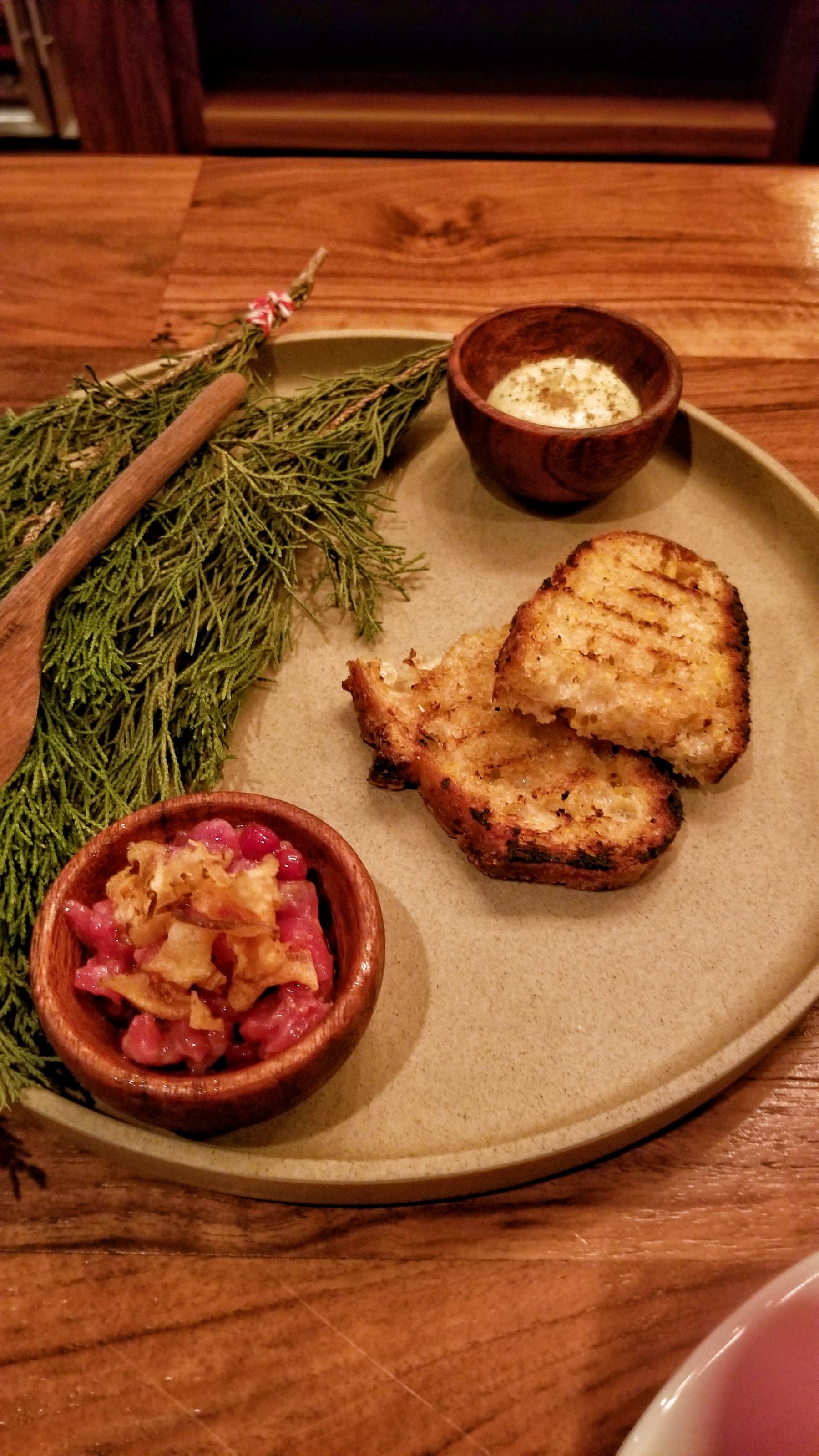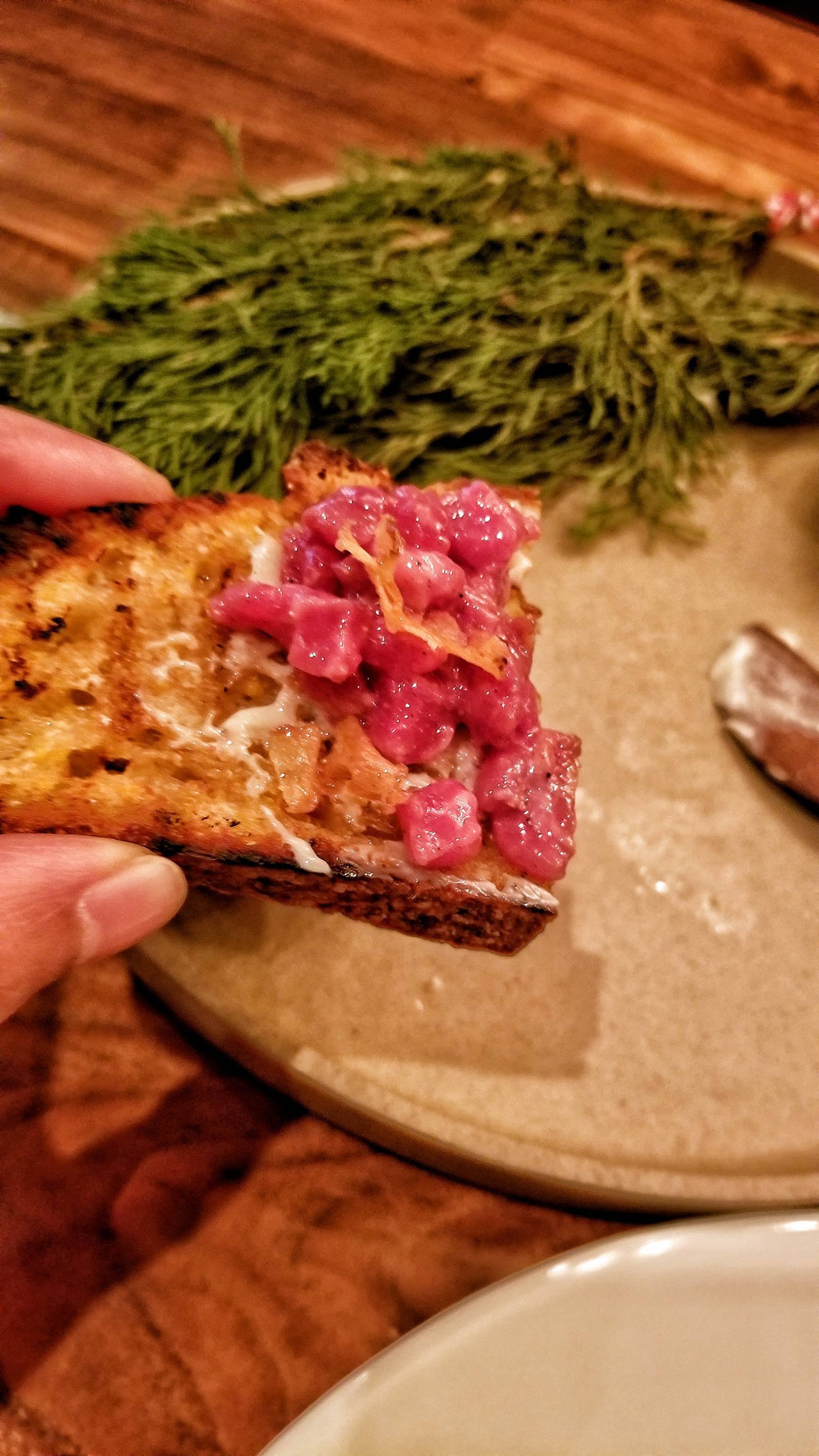 So far, so good. The kitchen was a pleasure to watch and the service was super attentive. The next course was a wonderful beef tartare with grilled bread.