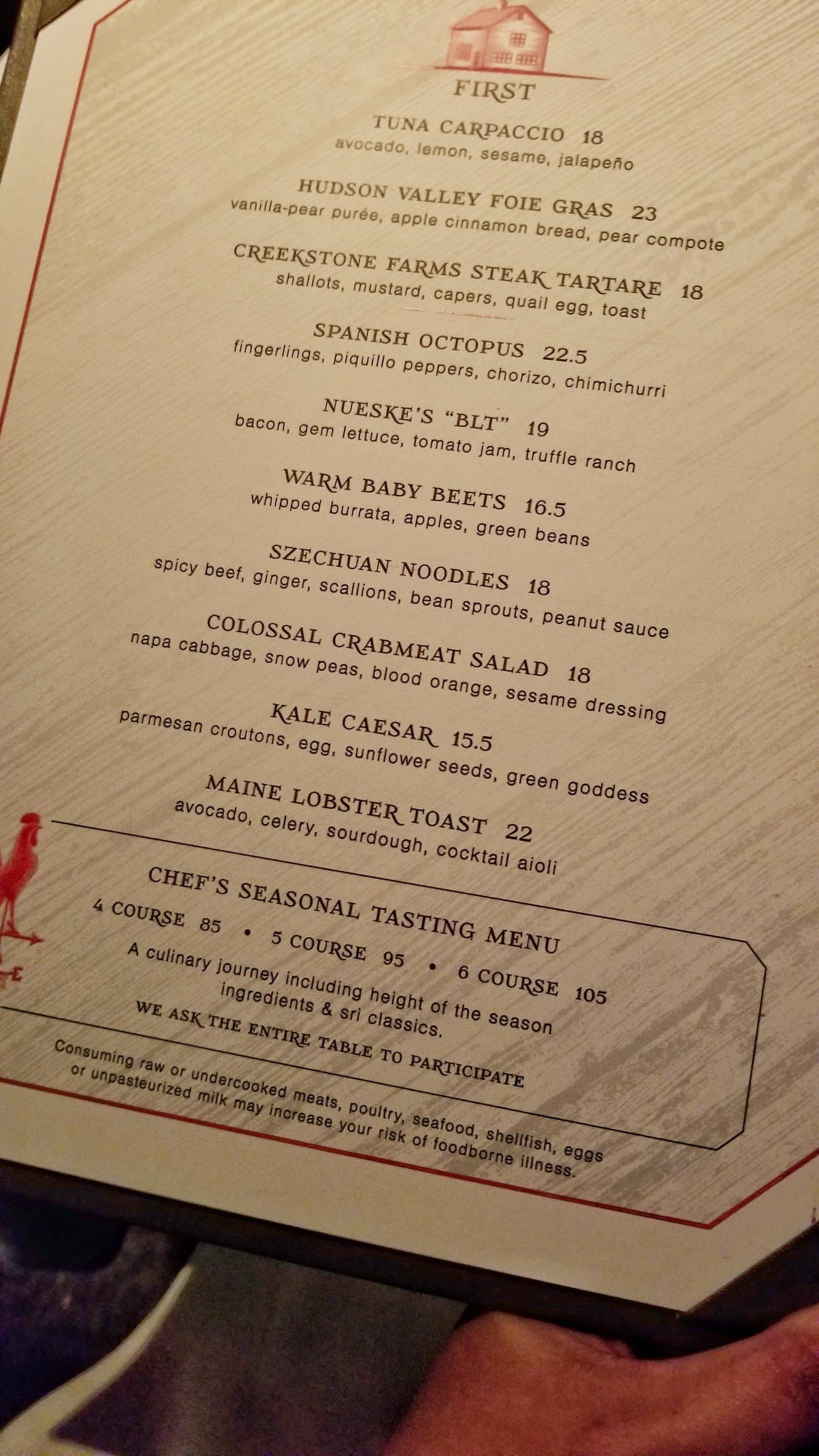 Chef Jamie Knott is doing everything right. He uses sustainable seafood, Prime dry-aged beef, and local organic produce whenever possible. I decided to go with the 5-course tasting menu. The menu changes twice seasonally.