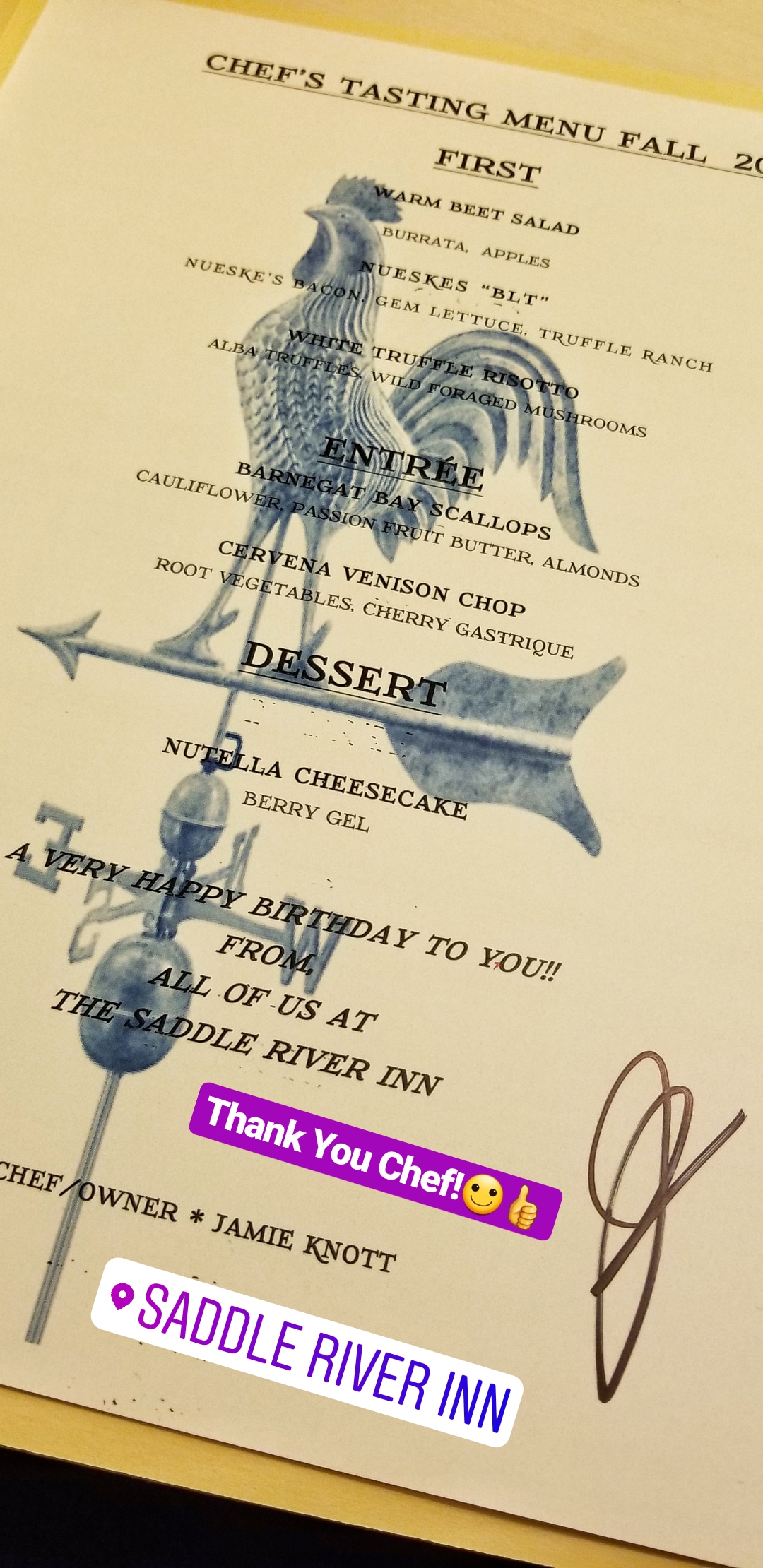Dinner at Saddle River Inn was lovely. I’m happy I finally had the chance to dine in the elegantly restored barn. Service was excellent as well. Thank you, Chef Knott!
