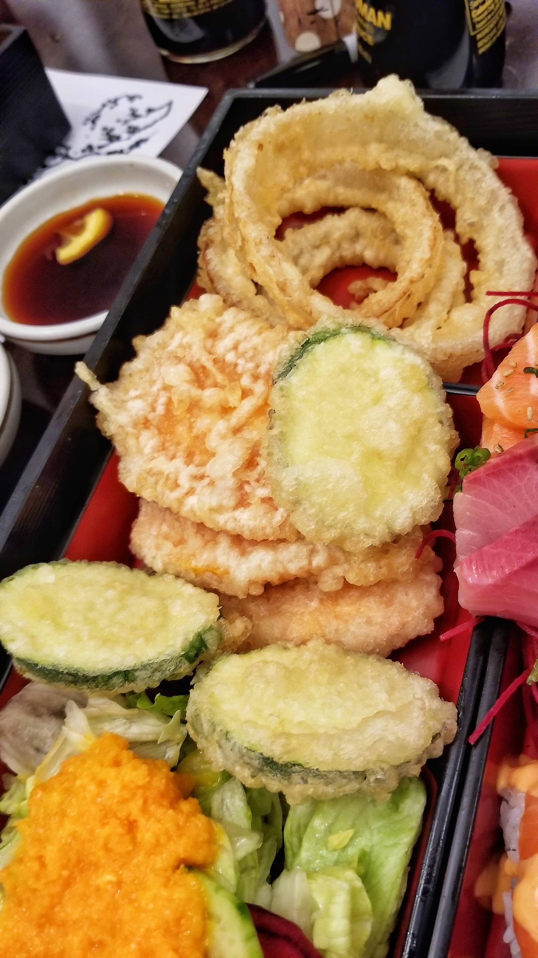 They let me substitute the shrimp tempura with extra veggies. The tempura is light and crispy.