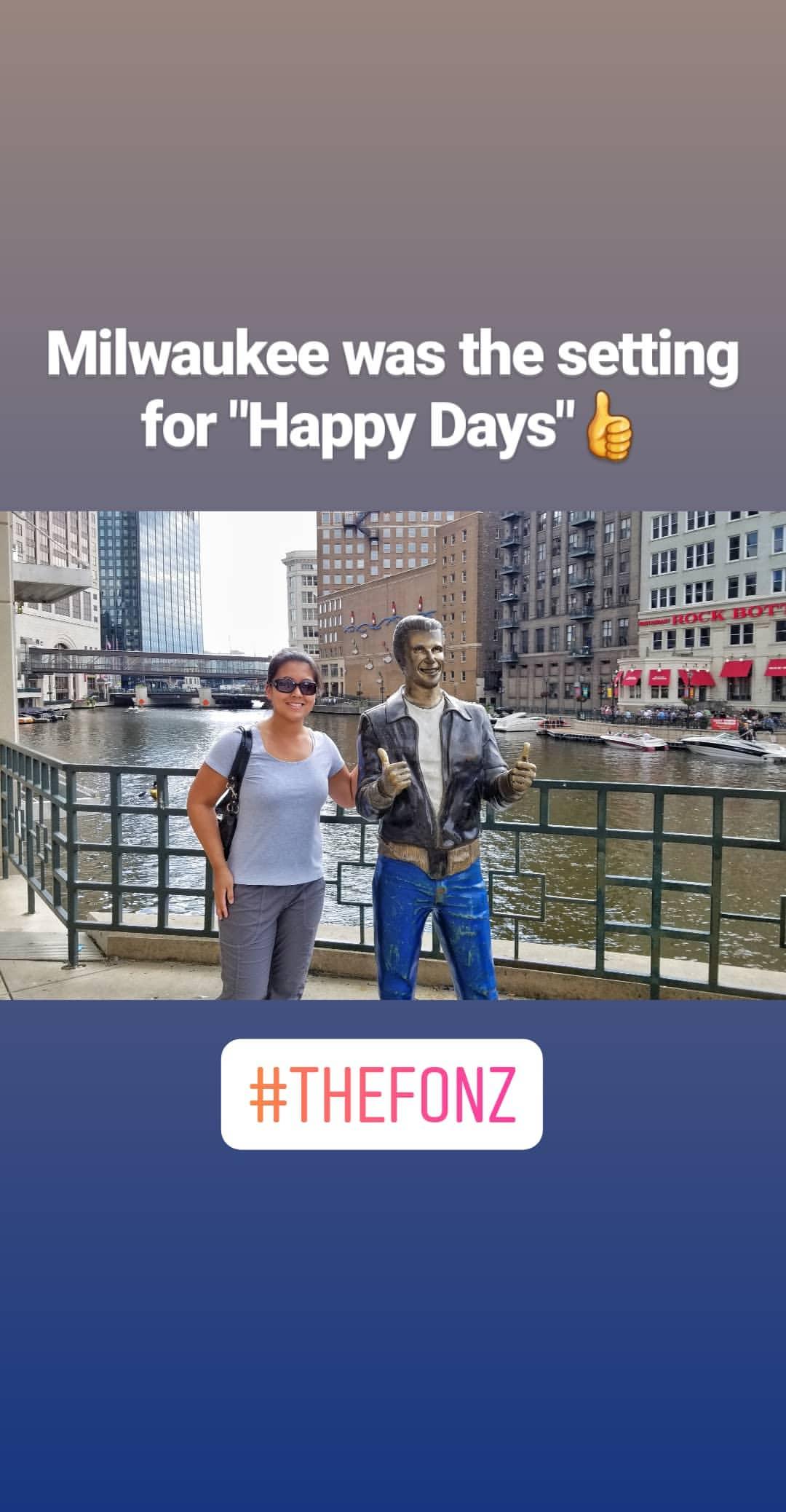 The next morning I took a stroll along the River Walk and said hi to the Bronze Fonz. Milwaukee was the setting for Happy Days and Laverne & Shirley.